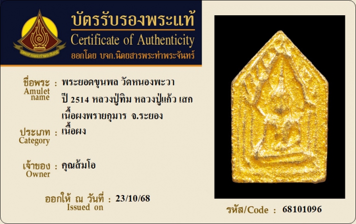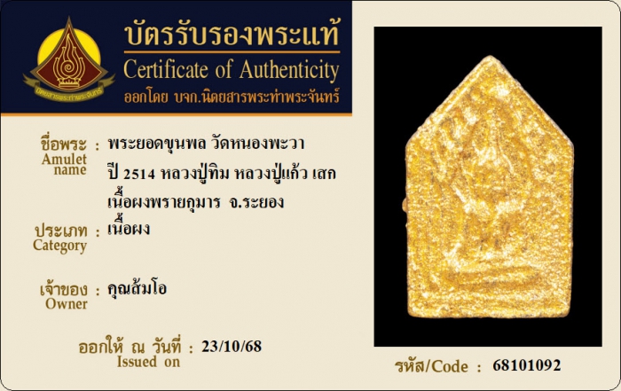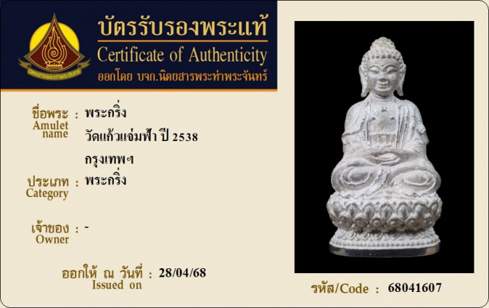 ค้นหาใบการันตีพระแท้