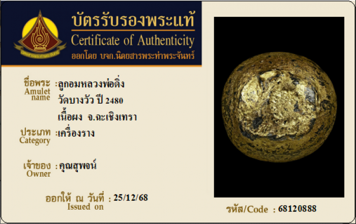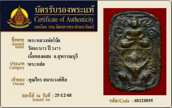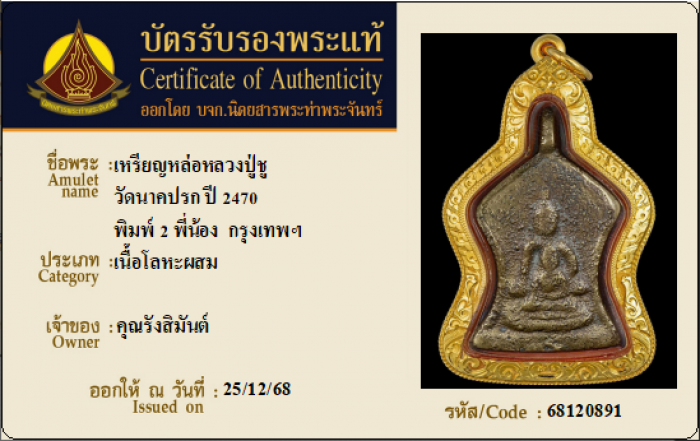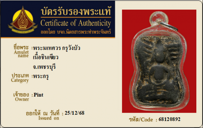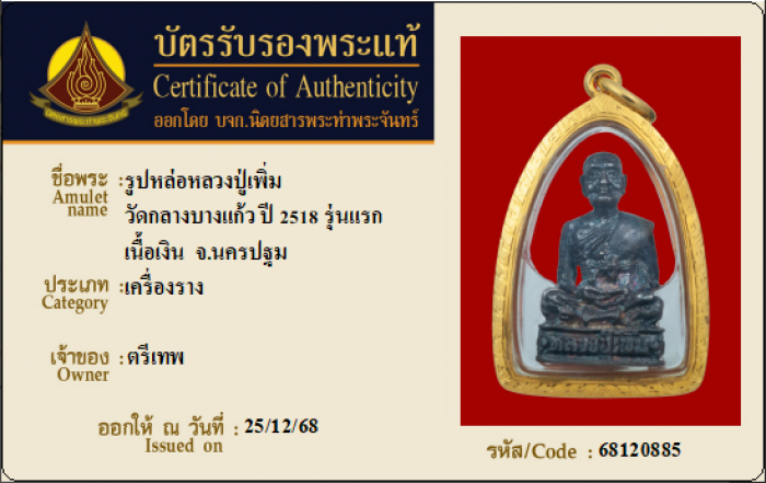ค้นหาใบการันตีพระแท้