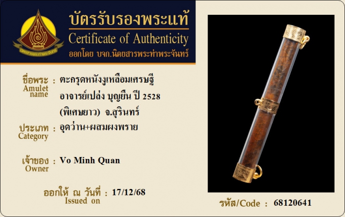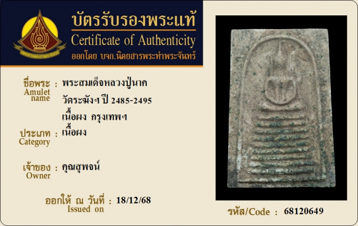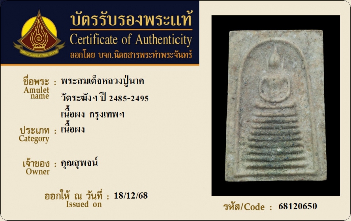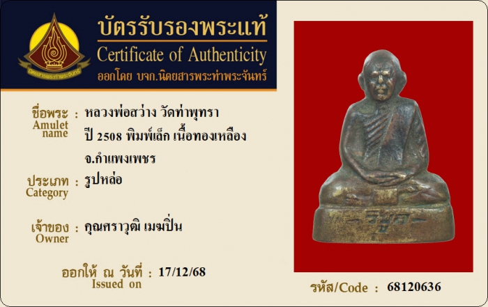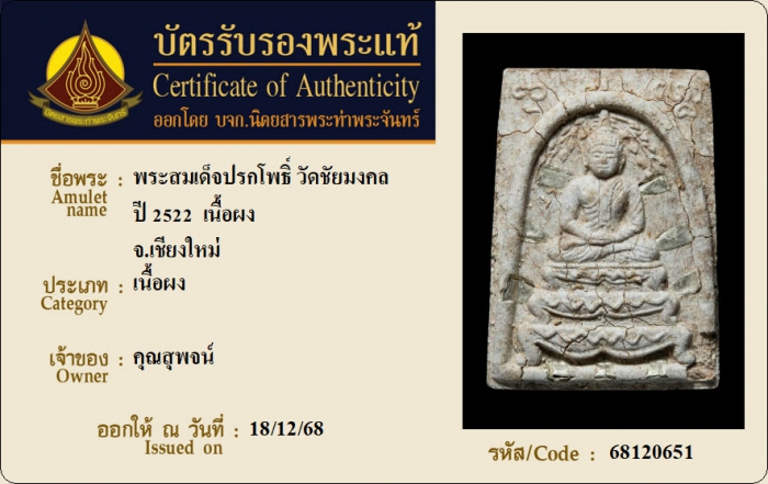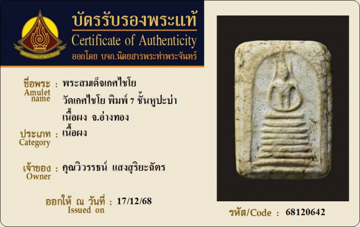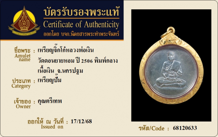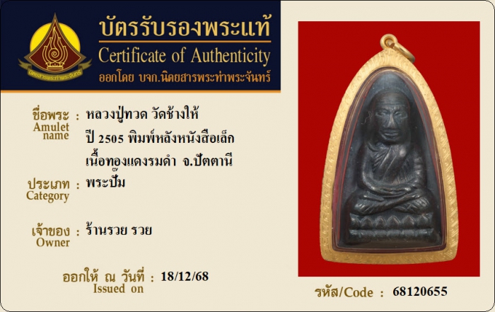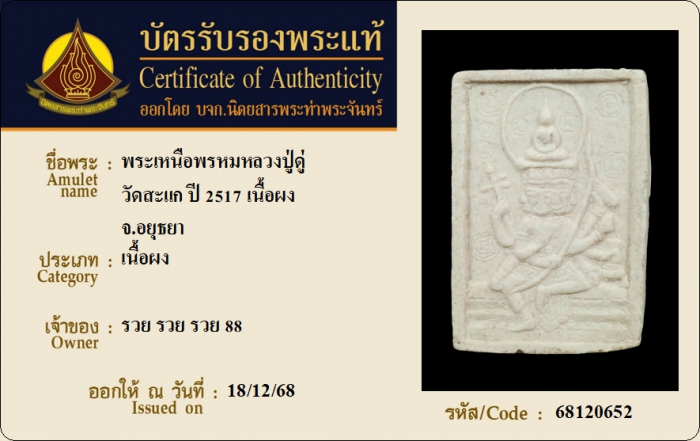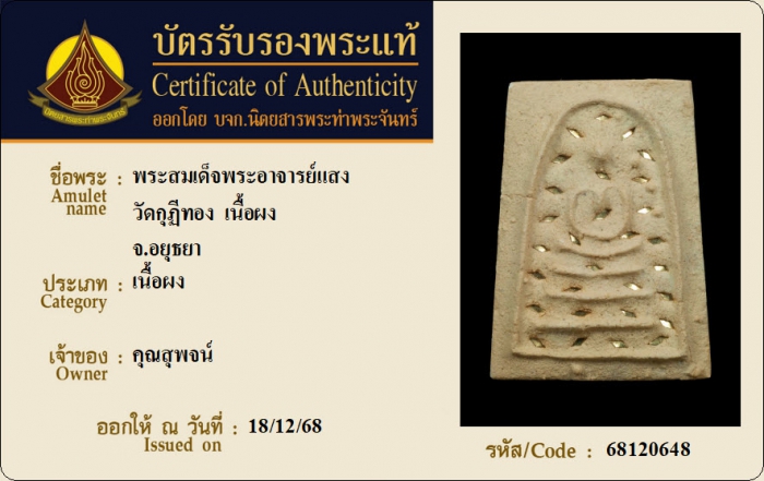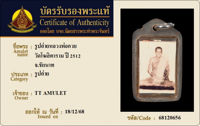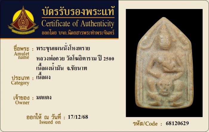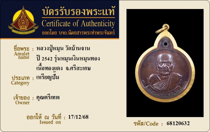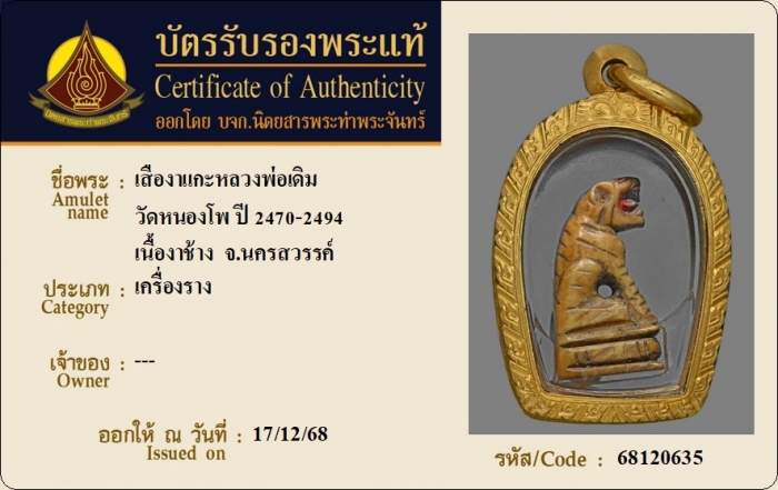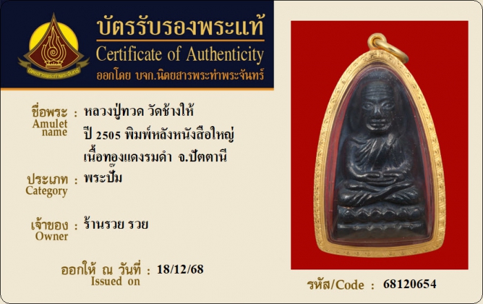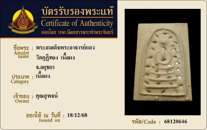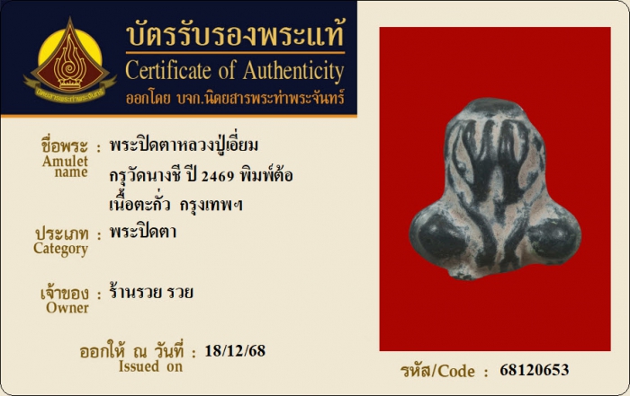 ค้นหาใบการันตีพระแท้