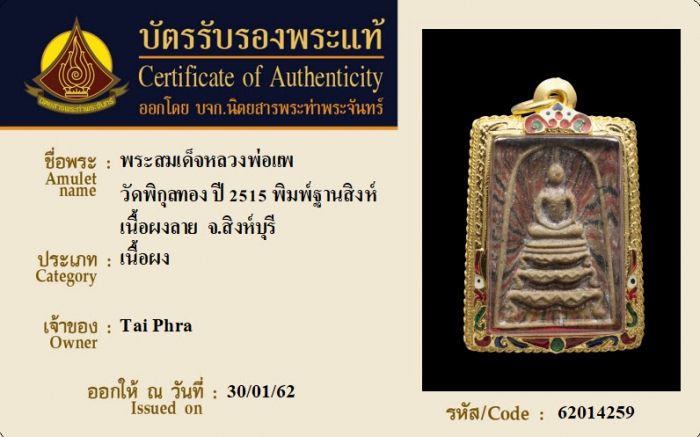 ค้นหาใบการันตีพระแท้