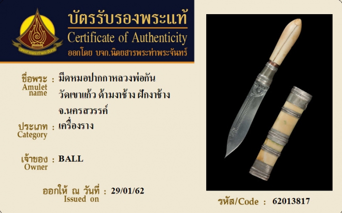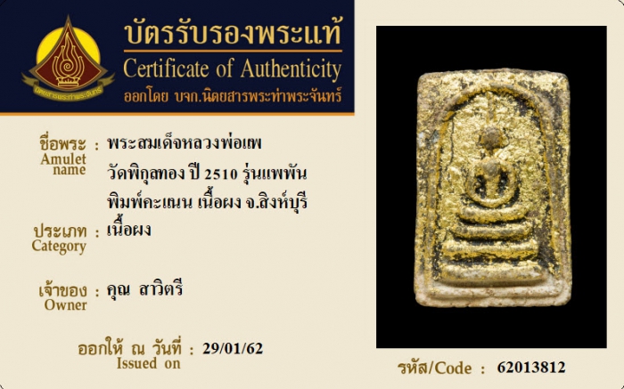 ค้นหาใบการันตีพระแท้