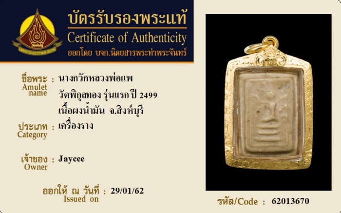 ค้นหาใบการันตีพระแท้