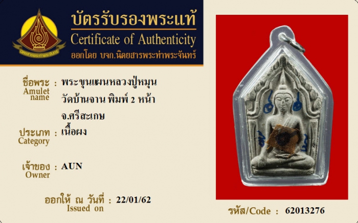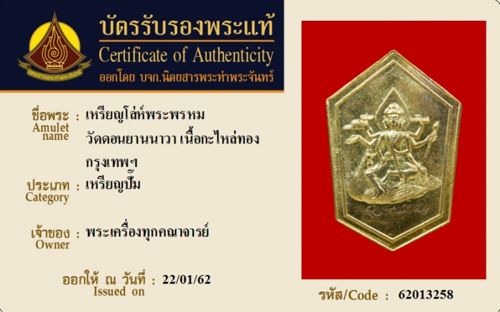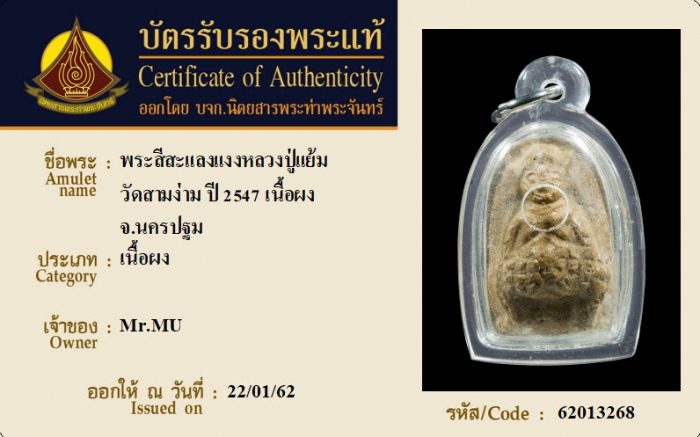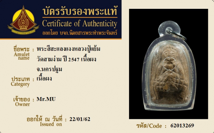 ค้นหาใบการันตีพระแท้