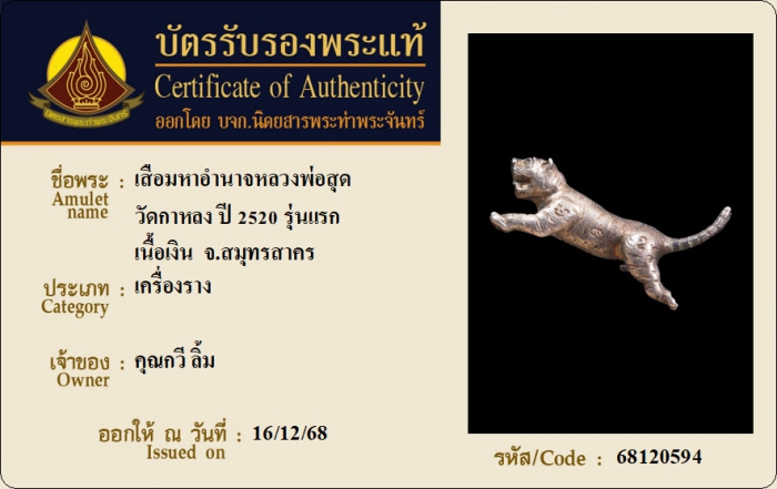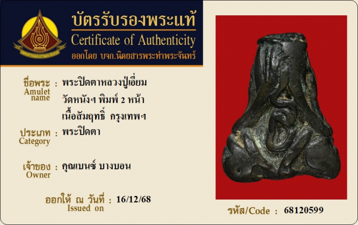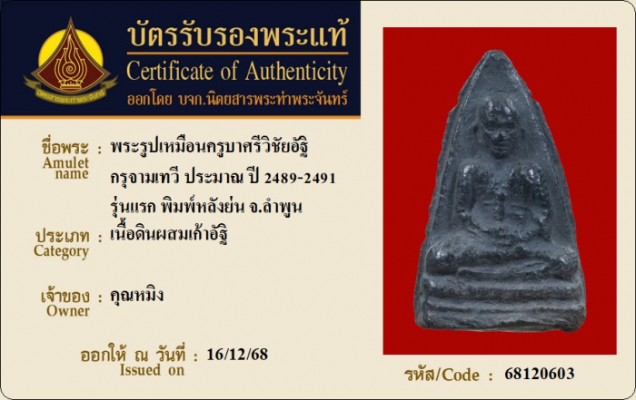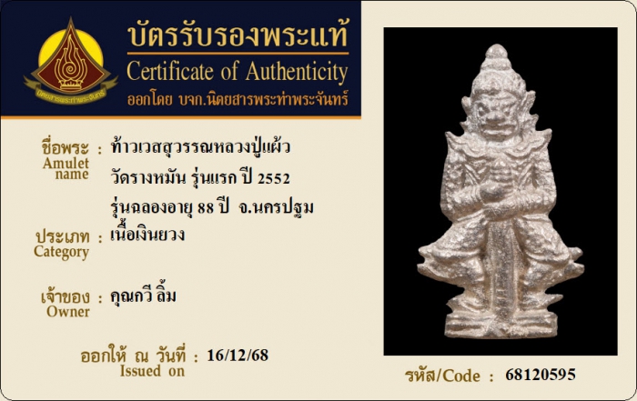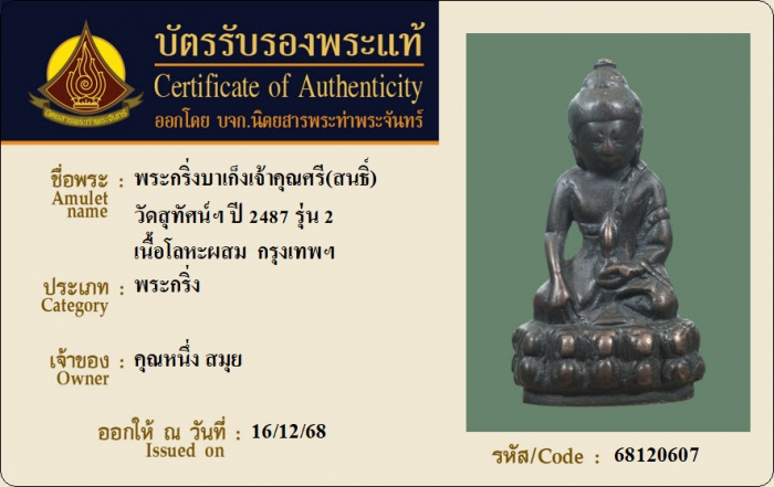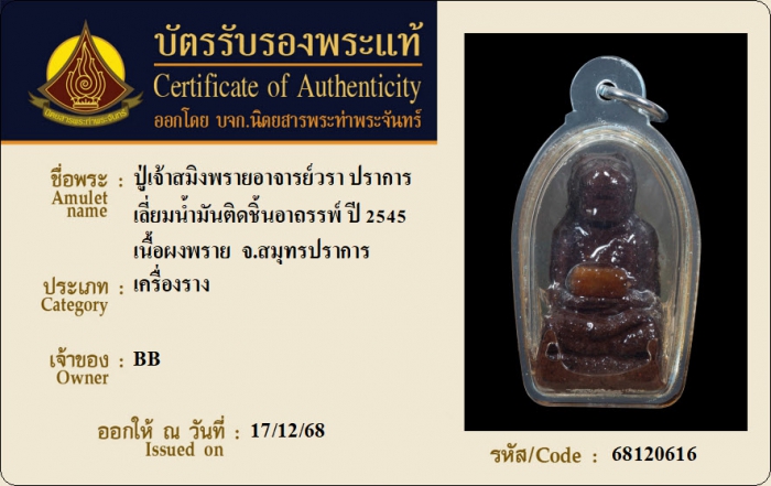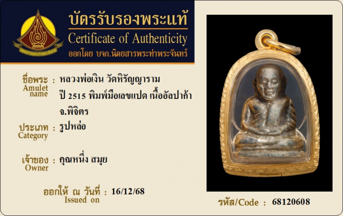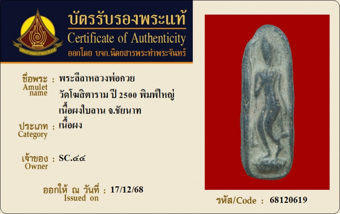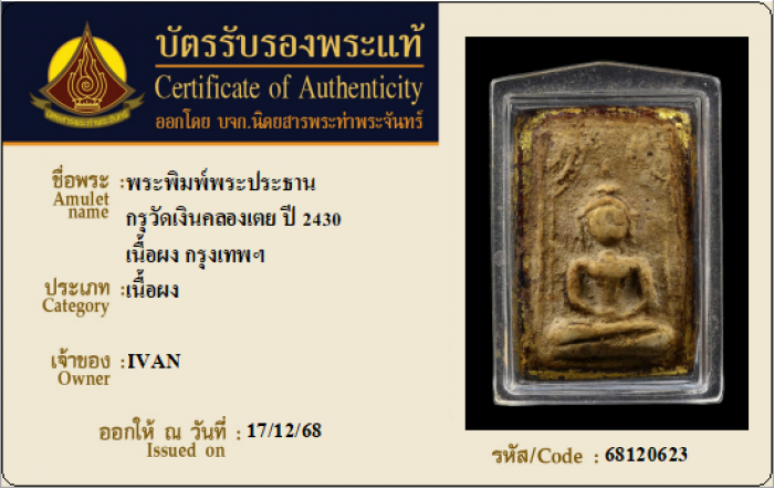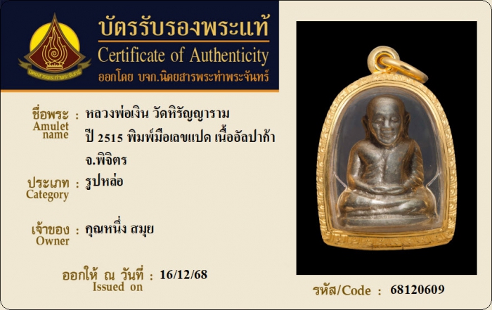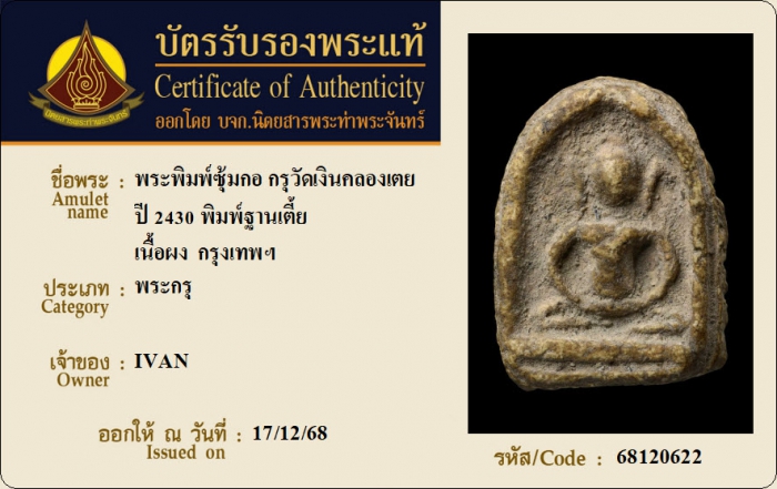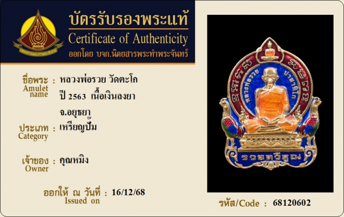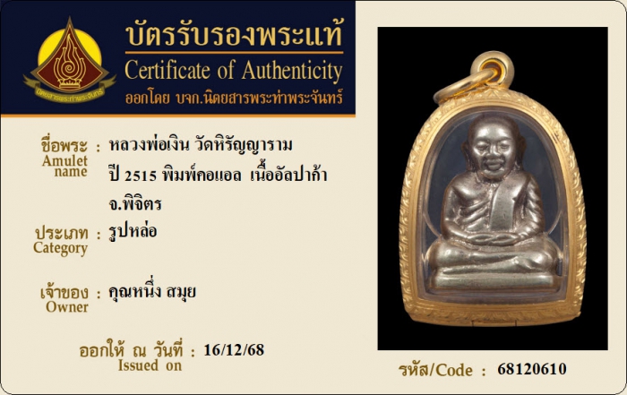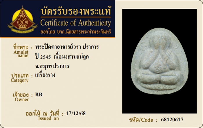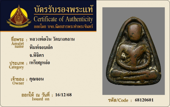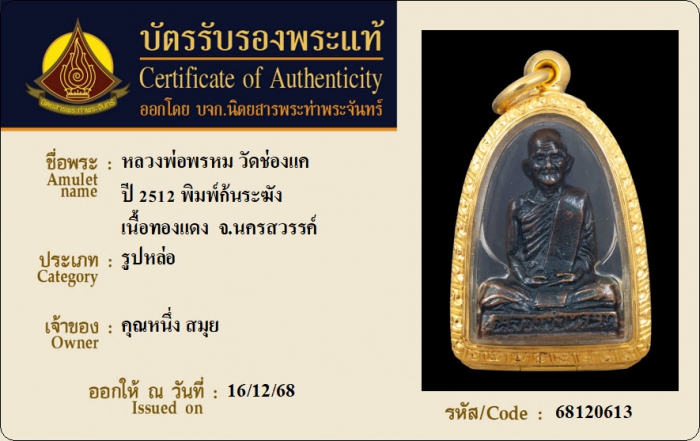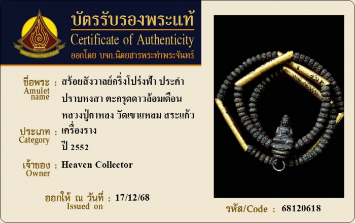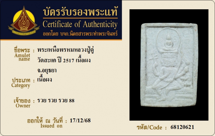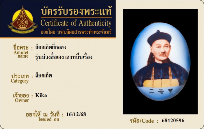 ค้นหาใบการันตีพระแท้