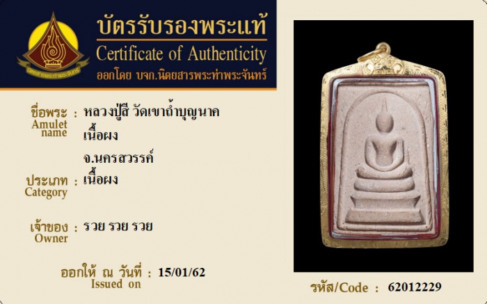 ค้นหาใบการันตีพระแท้