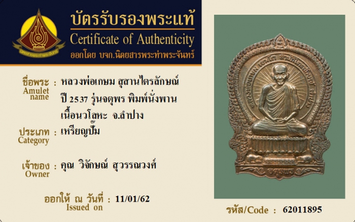 ค้นหาใบการันตีพระแท้