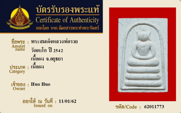 ค้นหาใบการันตีพระแท้