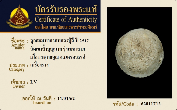 ค้นหาใบการันตีพระแท้