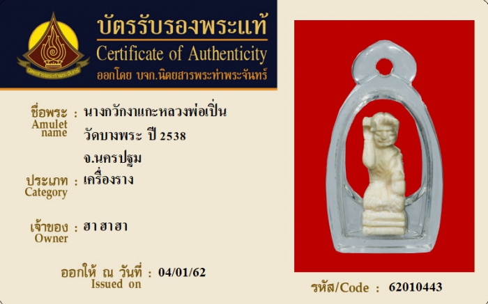 ค้นหาใบการันตีพระแท้