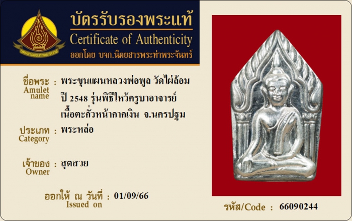 ค้นหาใบการันตีพระแท้