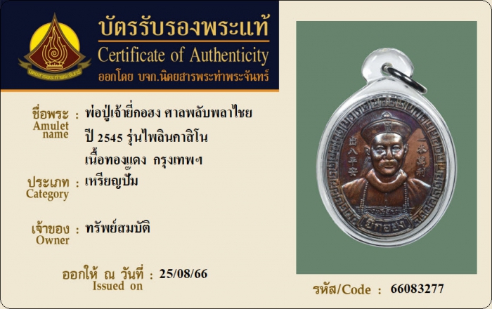 ค้นหาใบการันตีพระแท้
