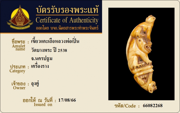 ค้นหาใบการันตีพระแท้