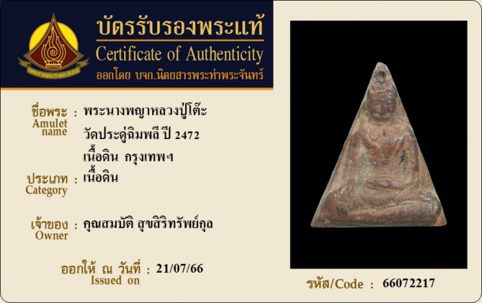 ค้นหาใบการันตีพระแท้
