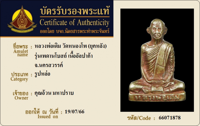 ค้นหาใบการันตีพระแท้