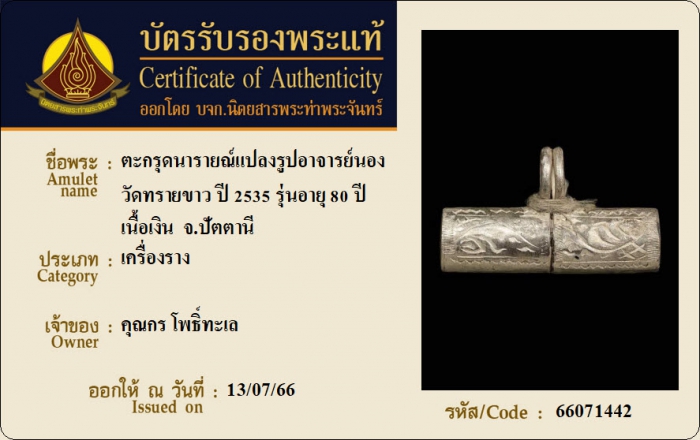 ค้นหาใบการันตีพระแท้