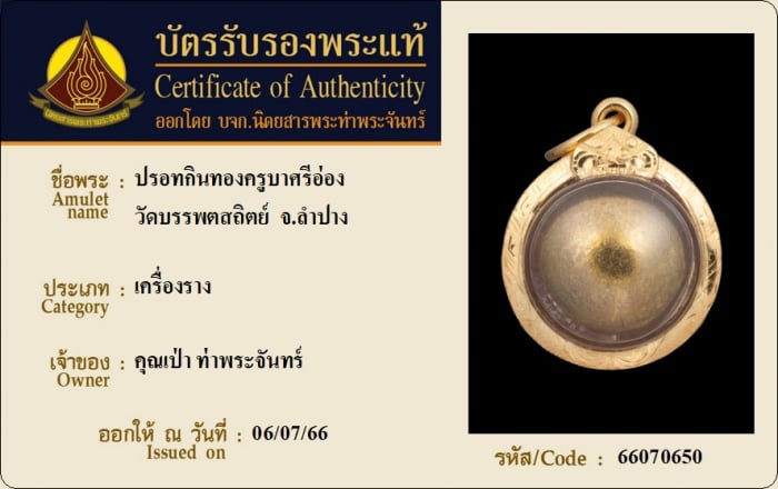 ค้นหาใบการันตีพระแท้