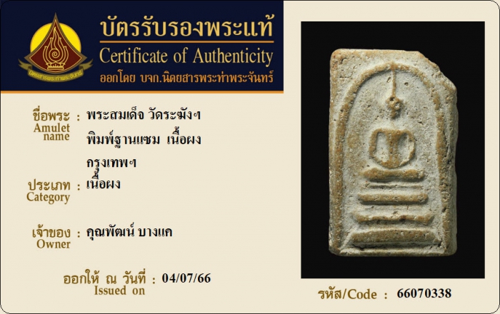 ค้นหาใบการันตีพระแท้