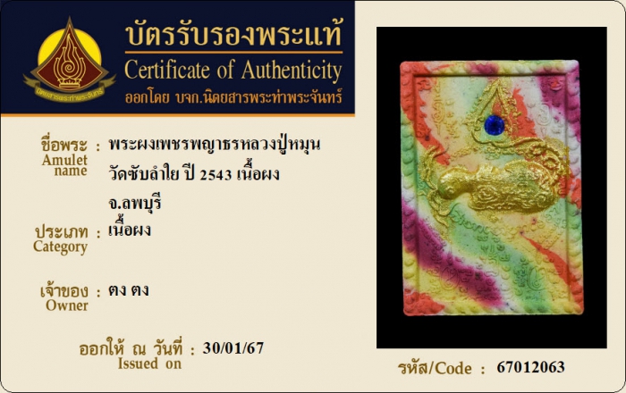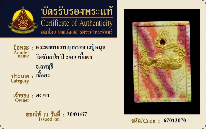 ค้นหาใบการันตีพระแท้