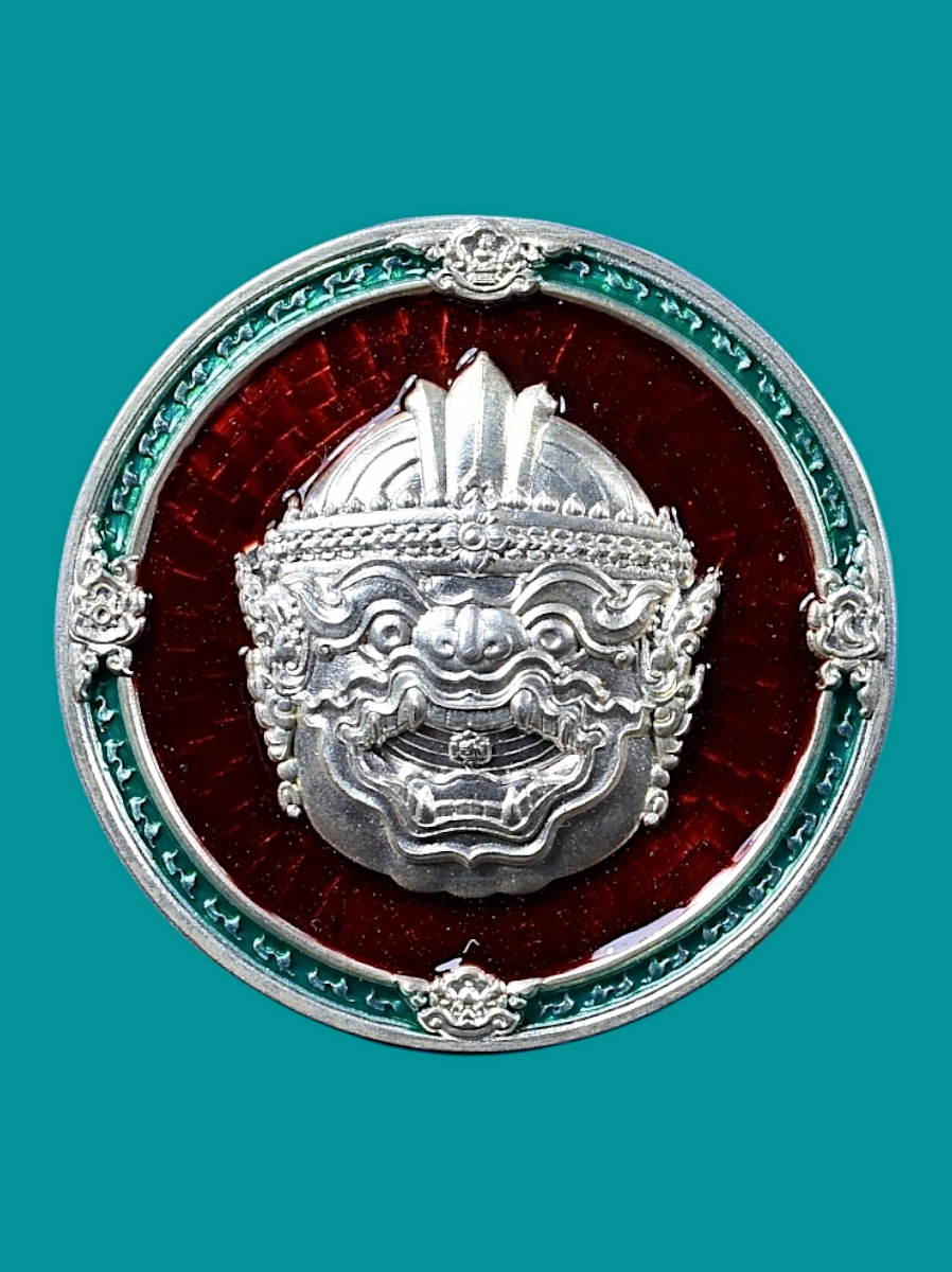 รายการที่ 1163 เหรียญกลมหน้าหนุมาน เนื้อเงินลงยา, เพ้นท์สี,ลงยาหน้ากากนาก