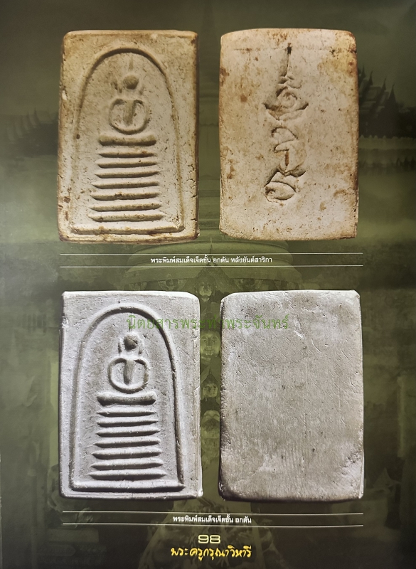 | รายละเอียดพระ | สมเด็จหลวงพ่อเผือก วัดกิ่งแก้ว สมุทรปราการ พิมพ์ 7 ชั้น ปี 2496 เนื้อจัดโซนกระดูกคล้ายกับสมเด็จเกศไชโย ถือว่าเป็นพระยอดนิยมของหลวงพ่อเผือกที่น่ามีไว้บูชาและศึกษาพระเนื้อพระผงเพื่อต่อยอดไปยังพระยอดนิยมได้ในอนาคต หลวงพ่อเผือกท่านเป็นลูกศิษย์หลวงปู่ทอง วัดราชโยธา ซึ่งเป็นศิษย์สมเด็จโตแห่งวัดระฆัง สืบทอดสายวิชากันมา ทำให้วัตถุมงคลที่หลวงพ่อเผือก ปลุกเสกเข้มขลังตามแบบฉบับของอาจารย์ ทุกประการ พระรุ่นนี้สร้างเพื่อระดมทุนสร้างเจดีย์ ที่วัดกิ่งแก้ว สมุทรปราการ ตามที่ทุกท่านได้เห็นในปัจจุบัน จึงเป็นพระที่หลวงพ่อเผือกตั้งใจสร้างและปลุกเสก เป็นอย่างยิ่ง อีกทั้งมีมวลสารต่างๆ จากที่หลวงพ่อได้รวบรวมมวลสารต่างๆ ทำให้พระรุ่นนี้เป็นที่ประจักษ์และมากประสบการณ์ กับผู้ที่นำไปบูชาต่างแคล้วคลาดเมตตามหานิยมครบเครื่อง ในทุกๆ ด้าน และด้วยบารมีของหลวงพ่อเผือก จึงทำให้พระรุ่นนี้ทุกรุ่นและทุกพิมพ์หมดไปจากวัดในเวลาอันรวดเร็ว วัตถุมงคลของท่านเป็นที่นิยมมาก มีทั้งขุดสระ สมเด็จ พระเนื้อผง พิมพ์ต่างๆ รูปถ่ายเครื่องรางของขลัง อีกมากมายล้วนแล้วเป็นที่ได้รับความนิยม สุดยอดของหายากและมากประสบการณ์ จนเป็นที่กล่าวขานจากอดีตมาจนถึงปัจจุบันของชาวสมุทรปราการ “ เมื่อใจมีศรัทธา ปาฏิหาริย์จะเกิดขึ้นเสมอ “ |