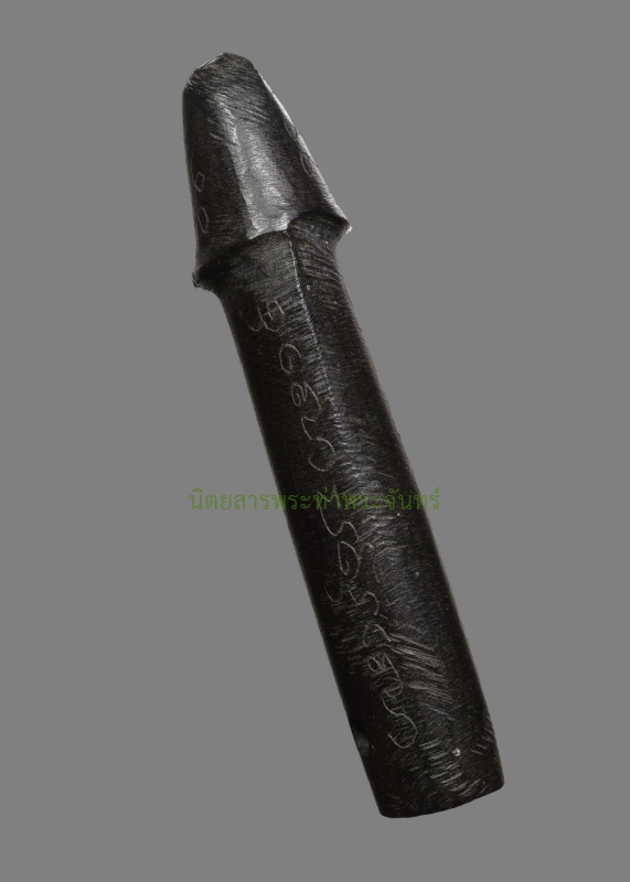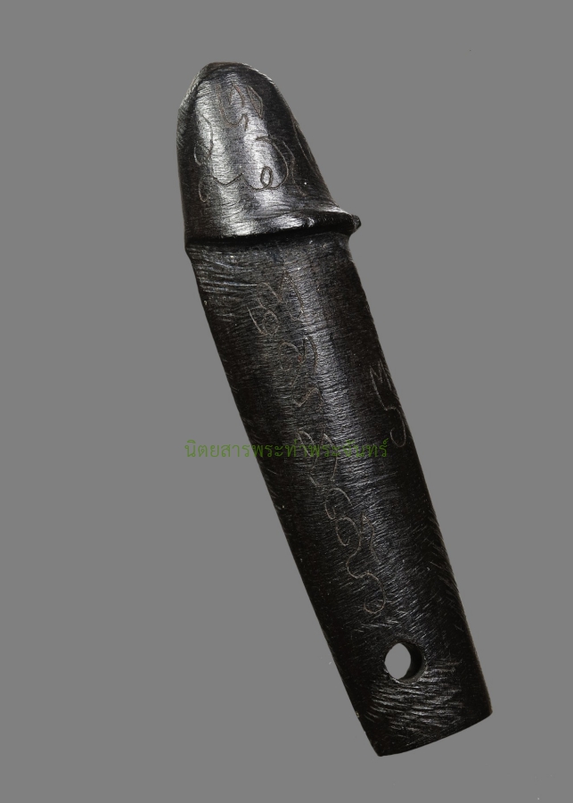 | รายละเอียดพระ | ปลัดขิกไม้พญางิ้วดำ หลวงพ่อคง วัดวังสรรพรส จังหวัดจันทบุรี จัดสร้างในยุคปี2กว่า สภาพสวย ศิลปะตัวตรงขนาด 2.2 นิ้ว แกะจากของทนสิทธิ์มีอิทธิฤทธิ์ในตัวนั้นคือไม้พญางิ้วดำไม้มงคล ว่ากันว่าพุทธคุณของไม้พญางิ้วดำนั้นจะนำพาความร่ำรวย โชคลาภ และชัยชนะมาแก่ผู้ที่บูชา ดอกนี้ขนาดกำลังดีไม่เล็กไม่ใหญ่ จารยันต์ "นะหัวใจสตรี" ไว้ที่หัวปลัด "โอม-ปิ" ที่แก้มซ้ายขาว "โอม-มิ"ที่แก้วขวา จารกำกับคาถา 4 แถวมาตรฐานของวัดวังสรรพรส ลงหัวใจโจร "กันหะเนหะ" หัวใจเปรต "ทุสะนะโส" หัวใจธาตุทั้ง 4 "นะมะพะทะ" พระคาถาปลุกเสกปลัดขิกของหลวงพ่อคงแบบย่อ "อุโลปะสุโล" แล้วจารกำกับด้วย "คงขอม" ที่ท้ายปลัด สวยงามมาก 這尊男性生殖器護身符(Palad Khik)由黑檀木製成,由尖竹汶府旺桑帕羅斯寺的龍婆孔於20世紀20年代製作。它保存完好,造型筆直,長2.2吋。它由黑檀木雕刻而成,黑檀木是一種神聖而強大的材料。據說,黑檀木蘊含著神聖的力量,能為信奉它的人帶來財富、好運和勝利。這尊護身符大小適中,不大不小。護身符頭刻有「那華齋薩特」(Na Hua Jai Satre,意為「女人之心」)真言,左臉頰刻有「唵皮」(Om-Pi),右臉頰刻有「唵米」(Om-Mi)。碑文包含瓦旺桑帕羅寺的標準四行咒語,包括防盜咒“Kanha Neha”、驅趕餓鬼咒“Tusanaso”、四元素咒“Namaphattha”,以及龍婆孔加持陽具護身符的縮寫咒語 “Ulopasulo” 然後,在護身符背面刻上了“高棉文”字樣。它非常漂亮。 This Phallic Amulet (Palad Khik) is made from Black Ebony wood and was created by Luang Pho Kong of Wat Wangsanphraros, Chanthaburi Province, in the 1920s. It is in beautiful condition, with a straight figure and measures 2.2 inches. It is carved from Black Ebony wood, a sacred and powerful material It is said that the sacred power of the Black Ebony wood brings wealth, fortune, and victory to those who worship it. This amulet is a good size, neither too small nor too large. The "Na Hua Jai Satre" (Heart of a Woman) mantra is inscribed on the head of the amulet, "Om-Pi" on the left cheek, and "Om-Mi" on the right cheek The inscription contains the standard four-line mantra of Wat Wangsanphrarot, including the "Kanha Neha" mantra for thieves, the "Tusanaso" mantra for hungry ghosts, the "Namaphattha" mantra for the four elements, and the abbreviated mantra for consecrating phallic amulets by Luang Pho Khong, "Ulopasulo" Then, the inscription "Khmer script" was added to the back of the amulet. It was very beautiful. หากต้องการออกใบการันตีของนิตยสารท่าพระจันทร์ในชื่อท่าน ยินดีดำเนินการจัดส่งตรวจสอบเก๊-แท้ให้ครับ รับประกันแท้ตลอดชีวิต 0824649987 กอล์ฟ รัชพงศ์ |
