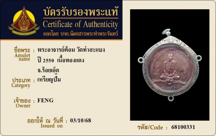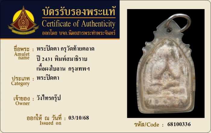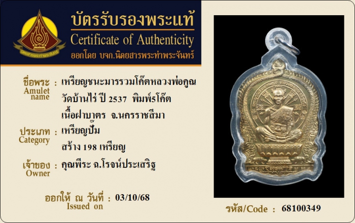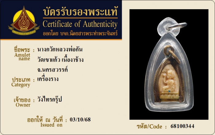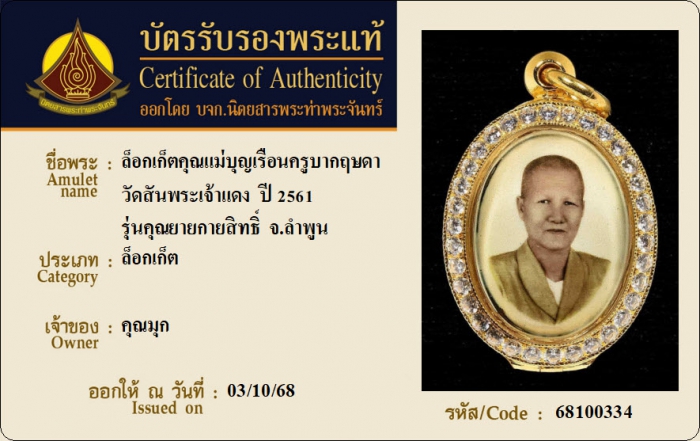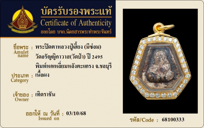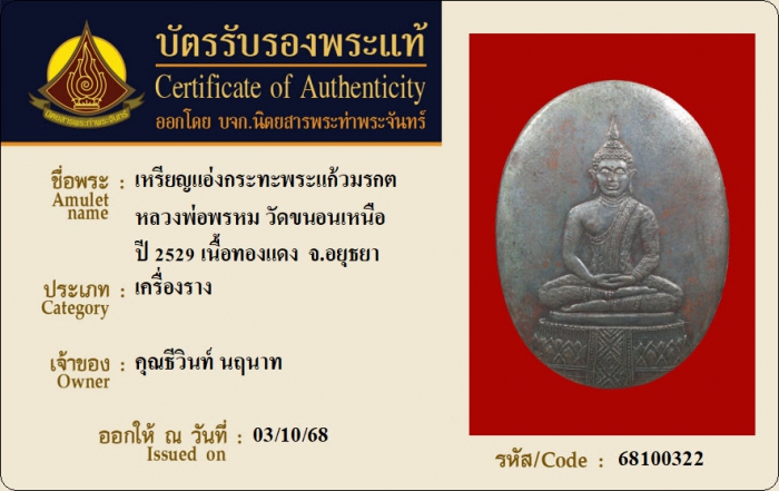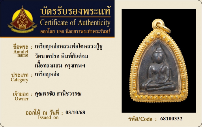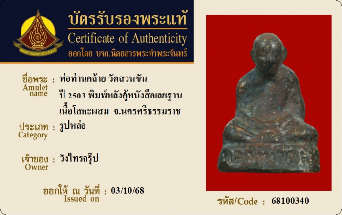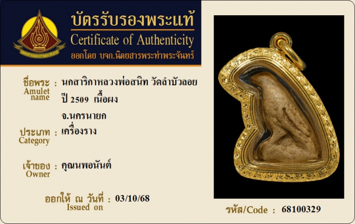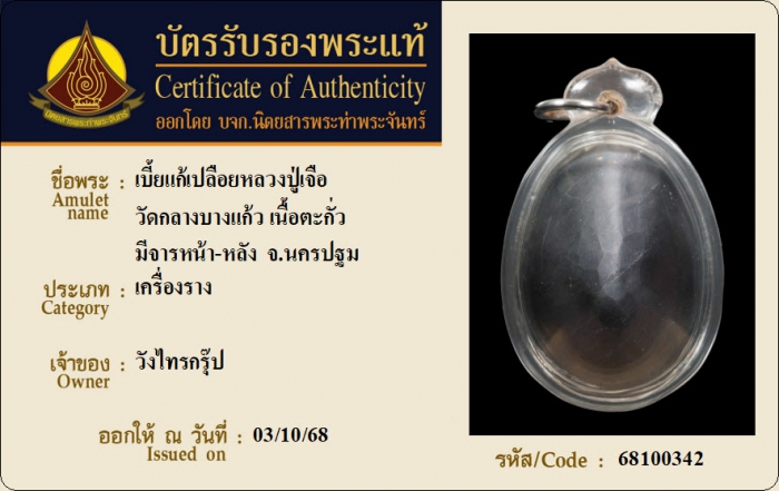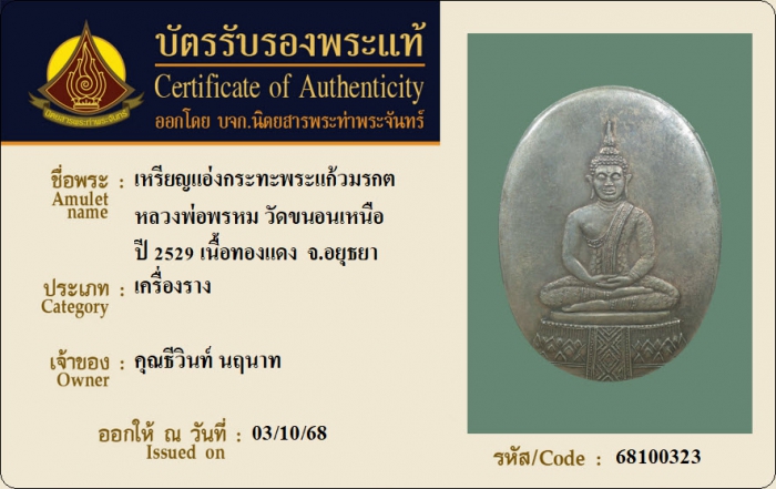 ค้นหาใบการันตีพระแท้