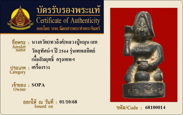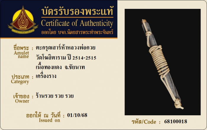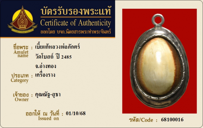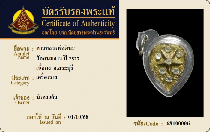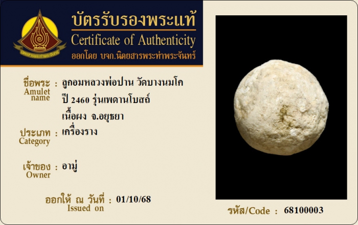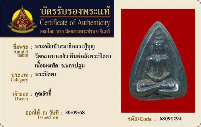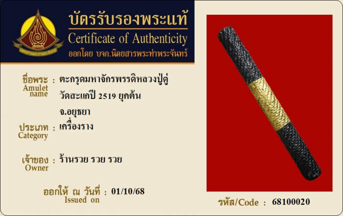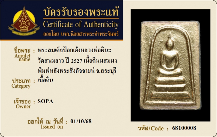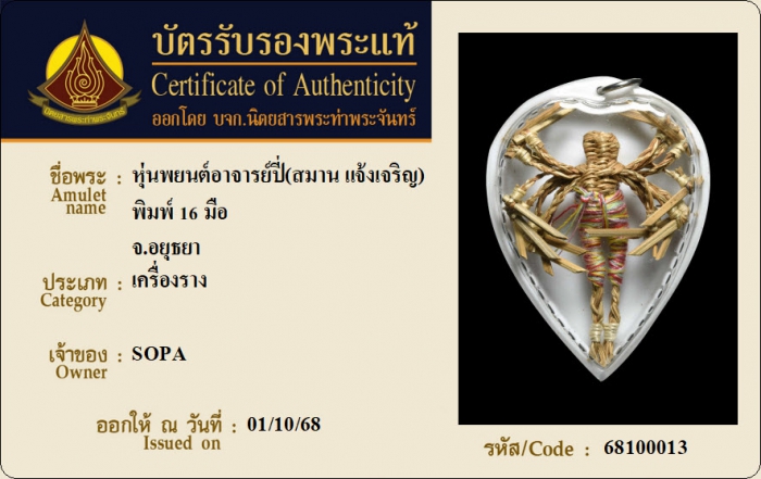 ค้นหาใบการันตีพระแท้