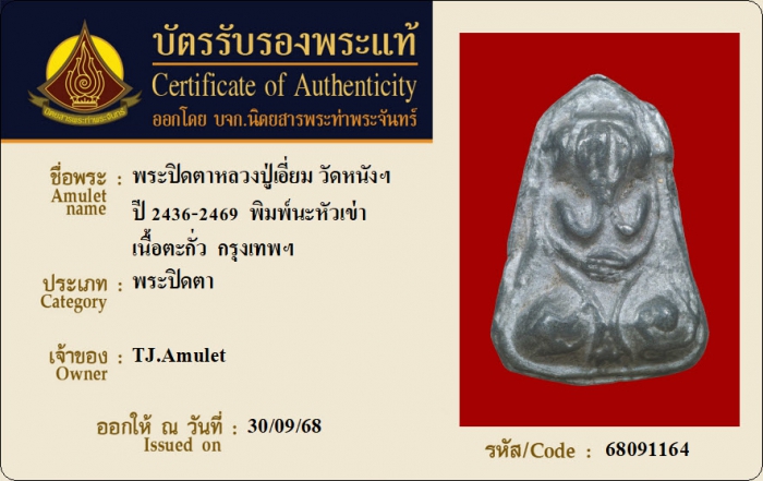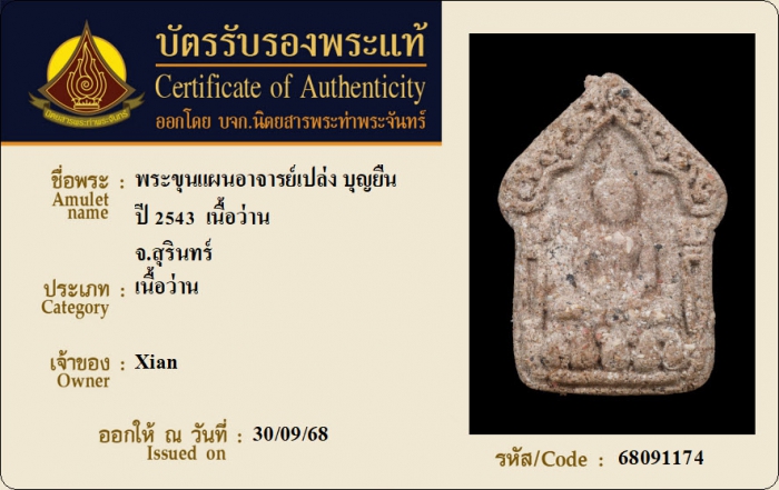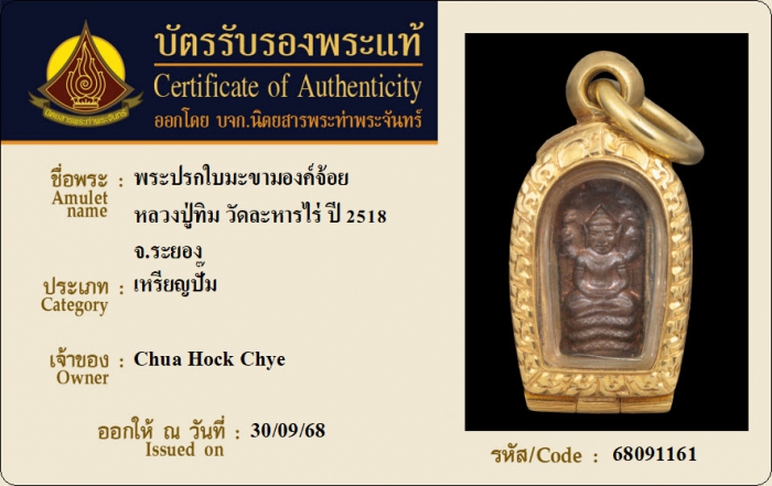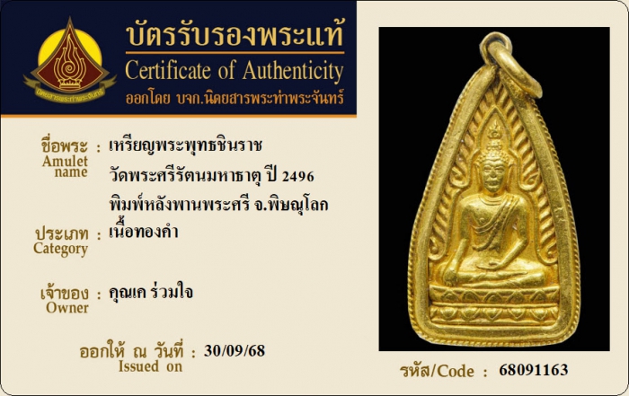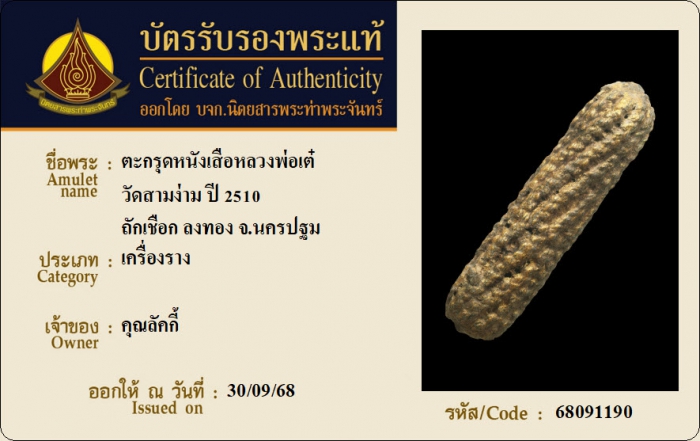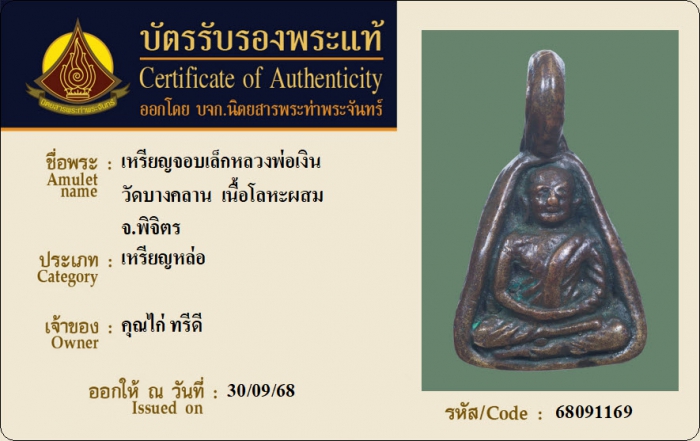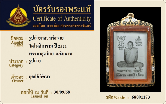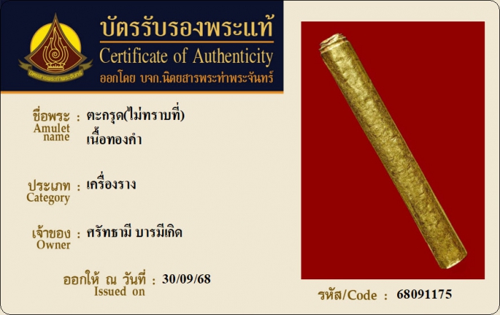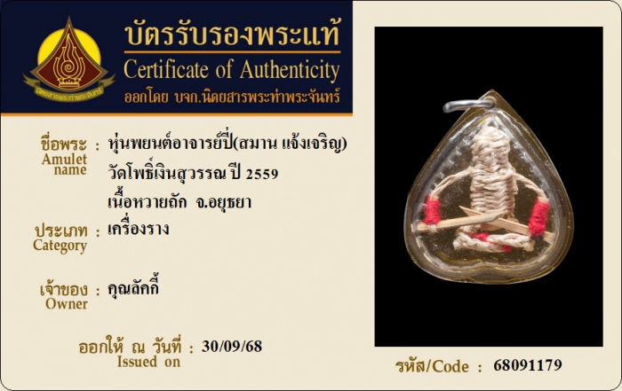 ค้นหาใบการันตีพระแท้
