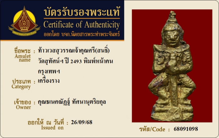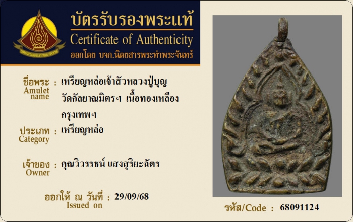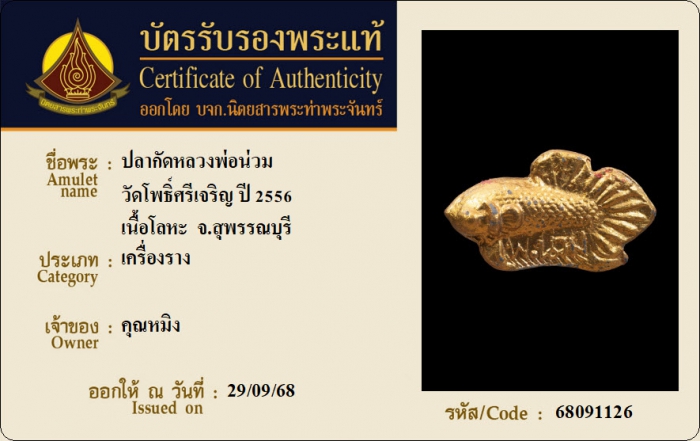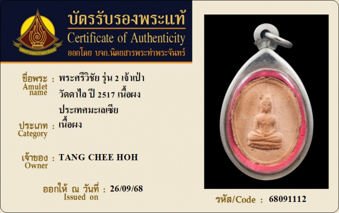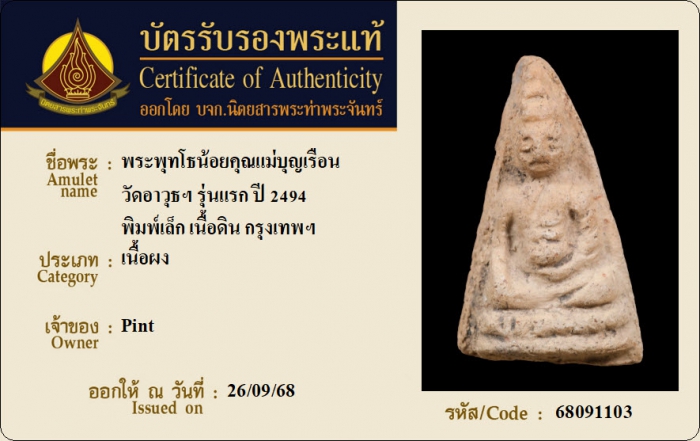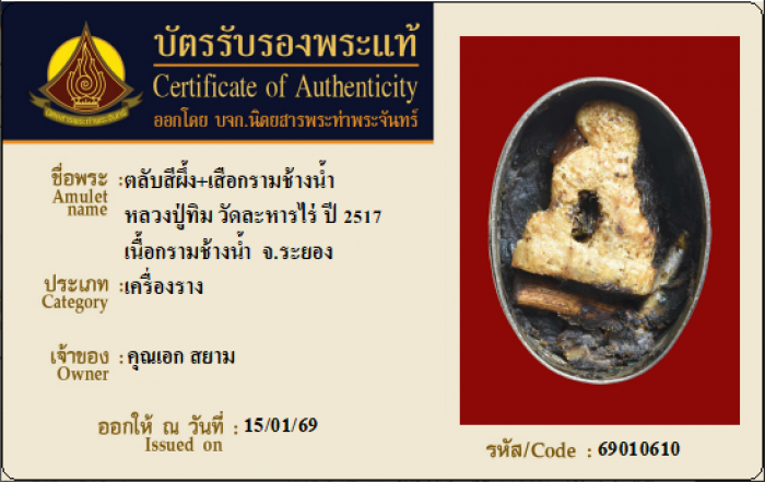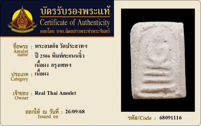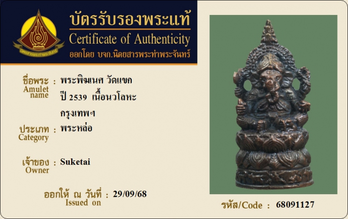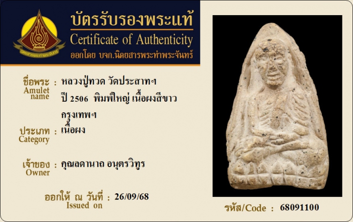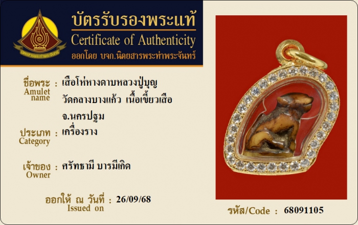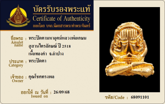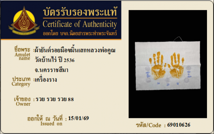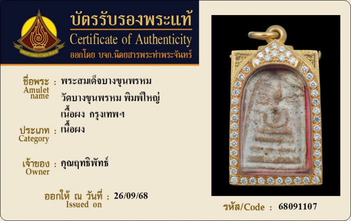 ค้นหาใบการันตีพระแท้