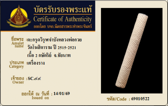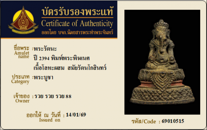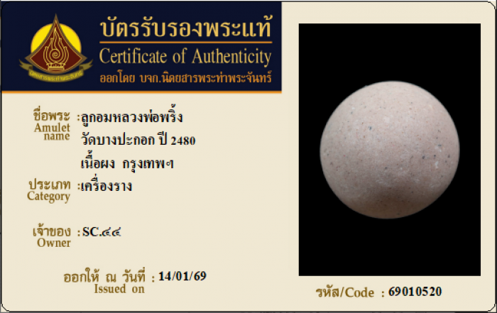 ค้นหาใบการันตีพระแท้