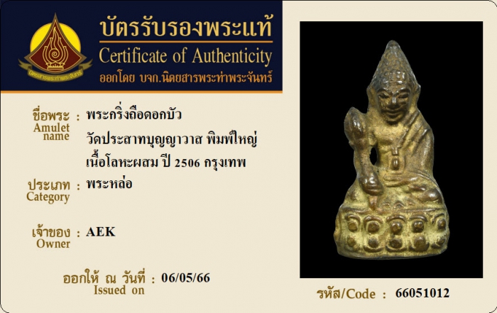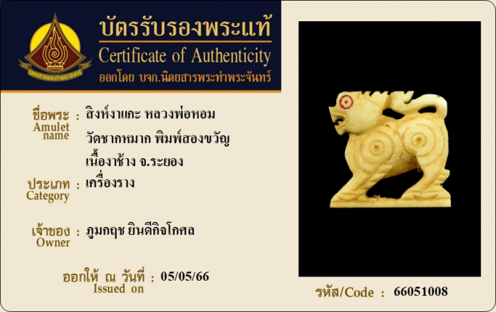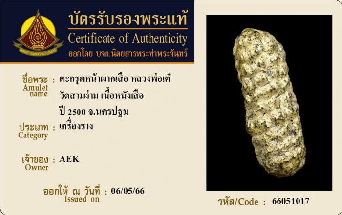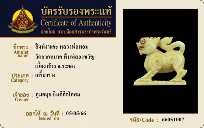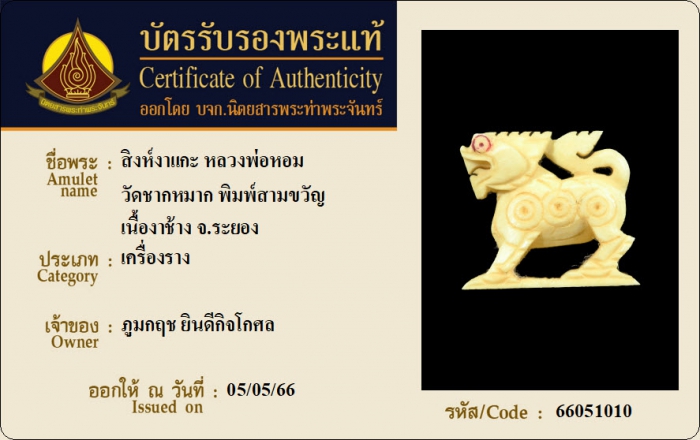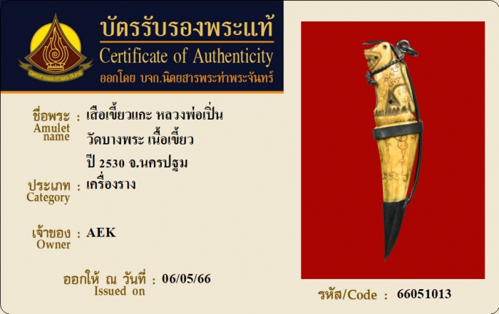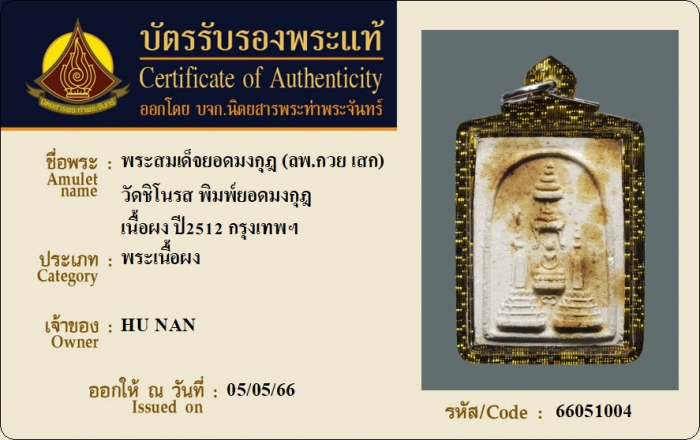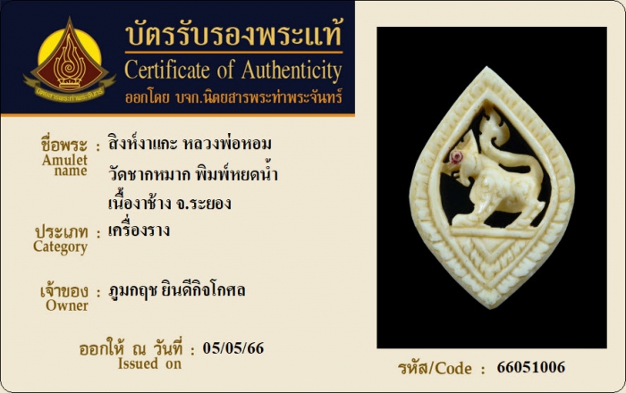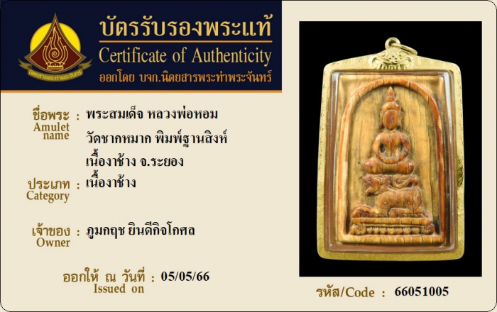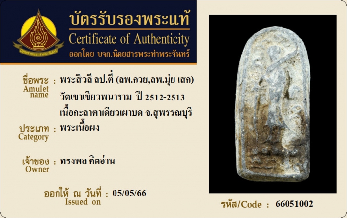 ค้นหาใบการันตีพระแท้