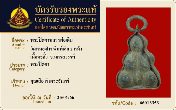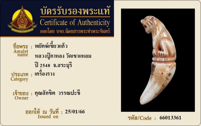 ค้นหาใบการันตีพระแท้