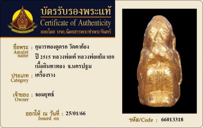 ค้นหาใบการันตีพระแท้