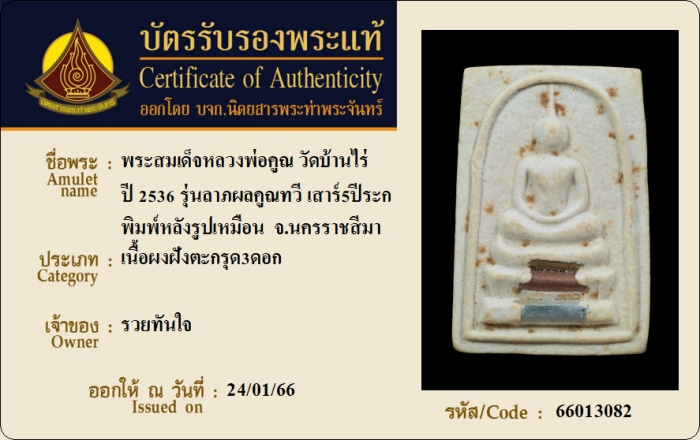 ค้นหาใบการันตีพระแท้