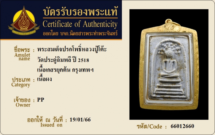 ค้นหาใบการันตีพระแท้
