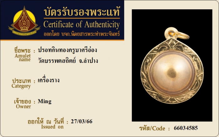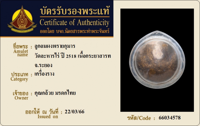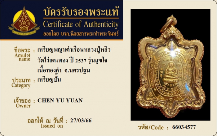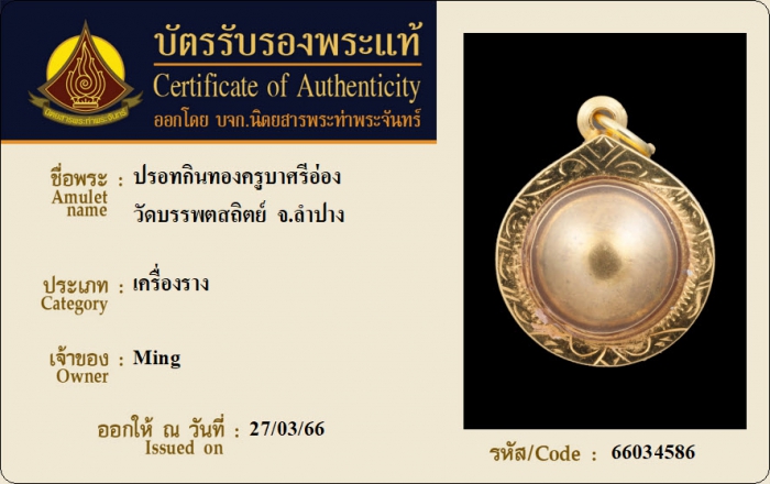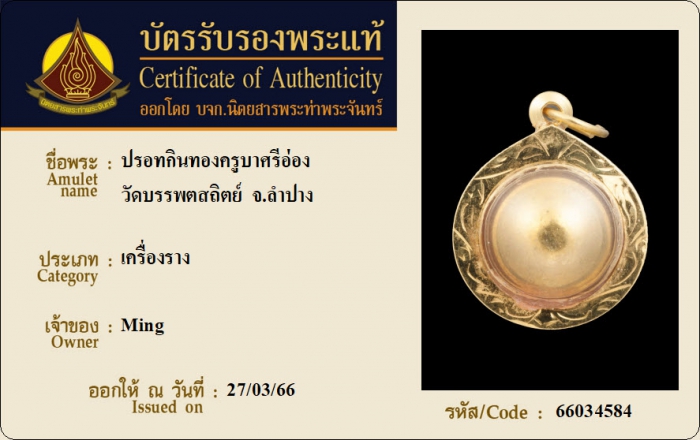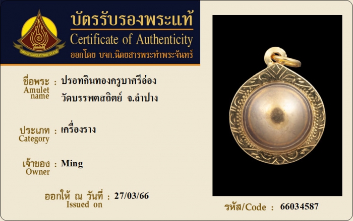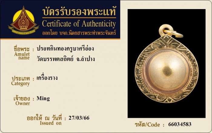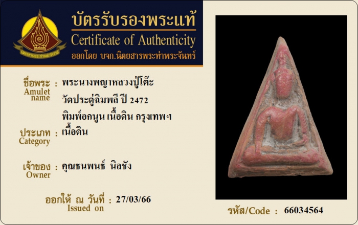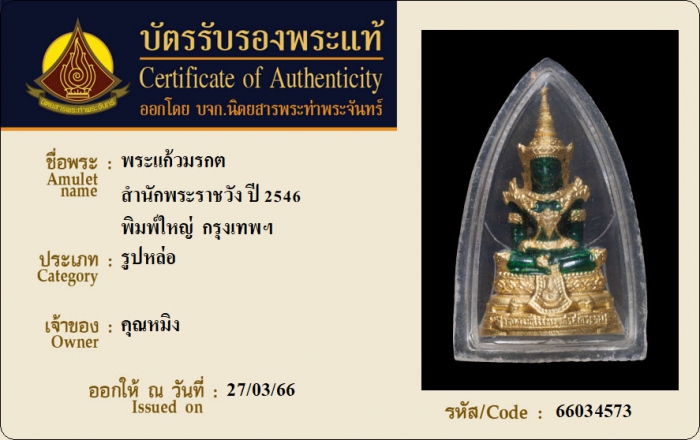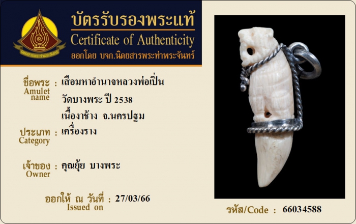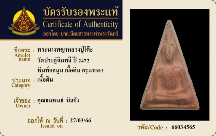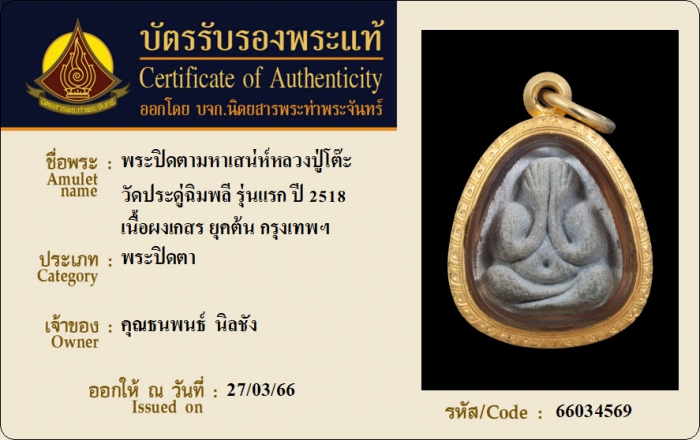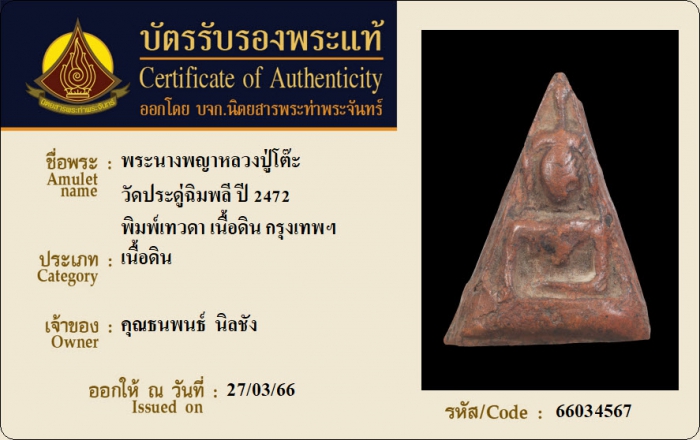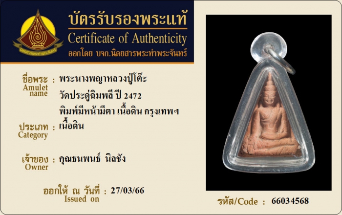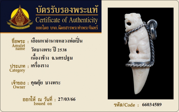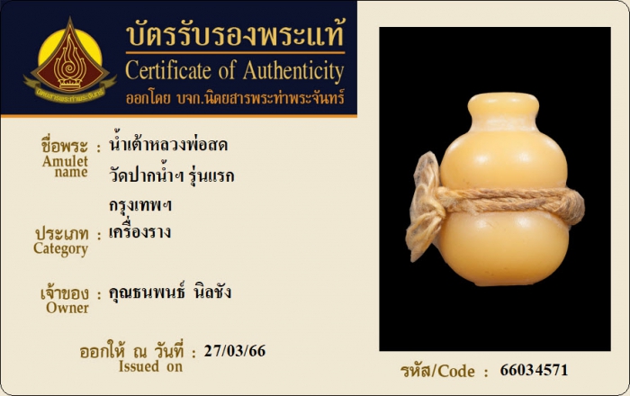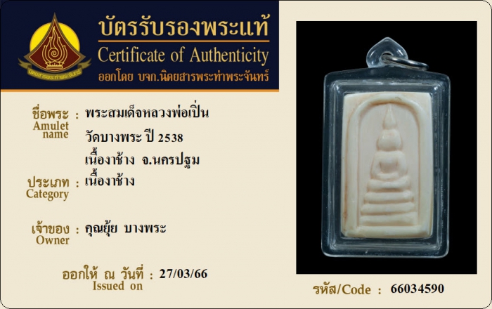 ค้นหาใบการันตีพระแท้
