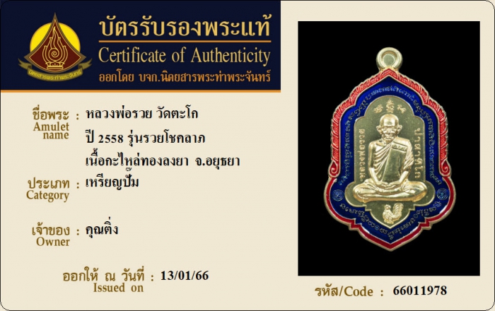 ค้นหาใบการันตีพระแท้