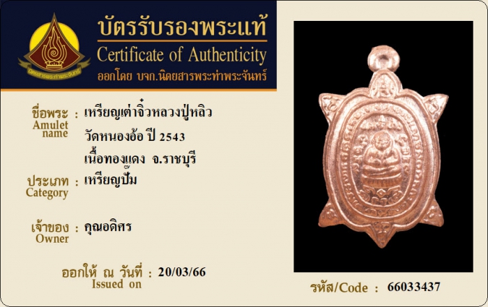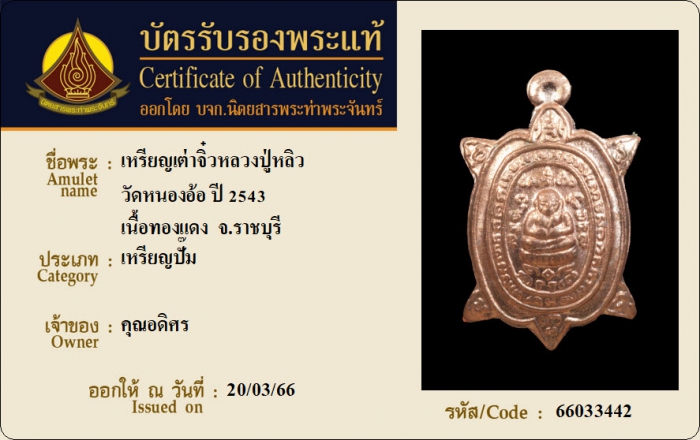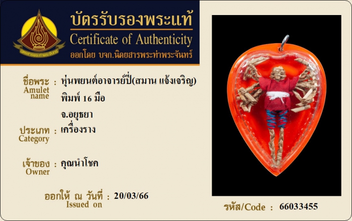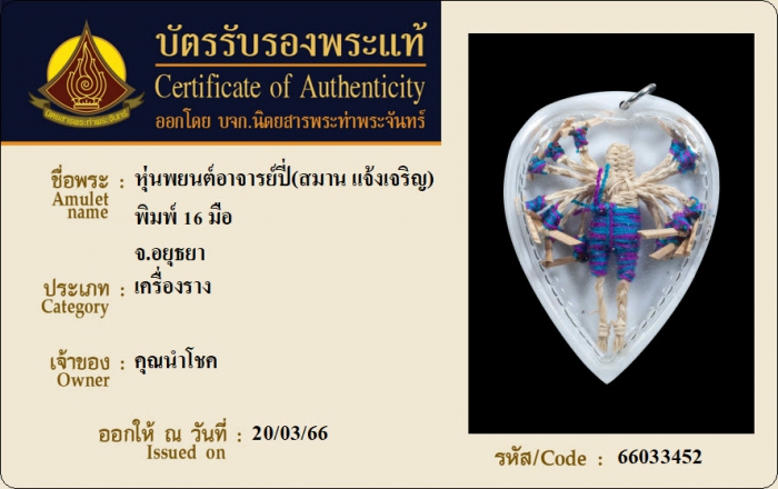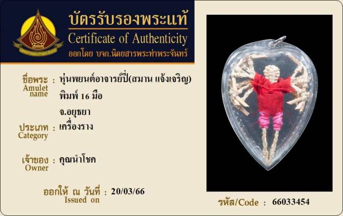 ค้นหาใบการันตีพระแท้