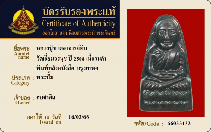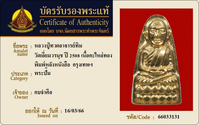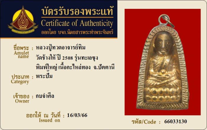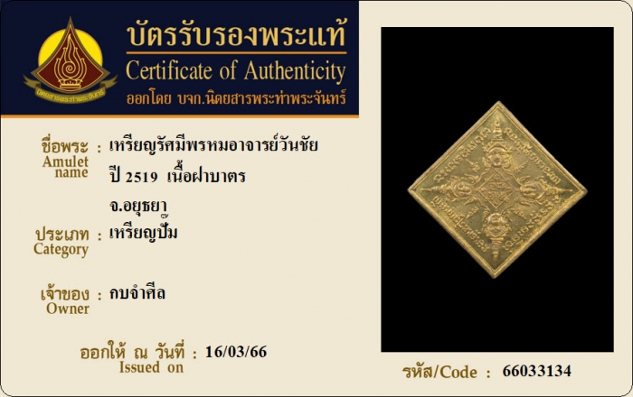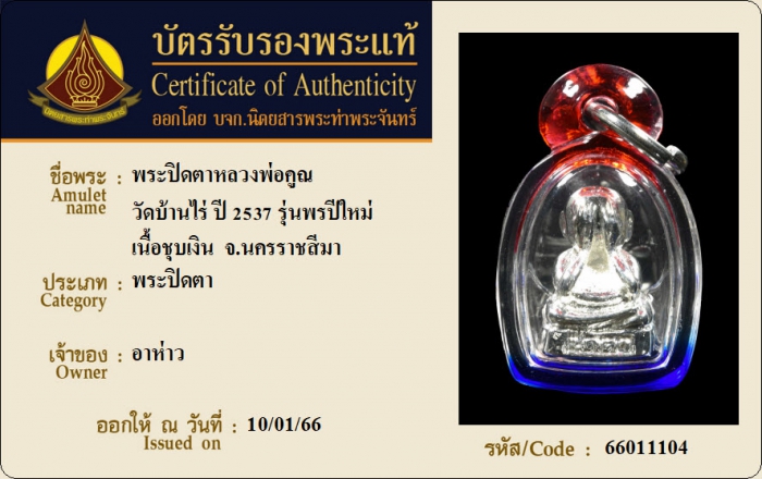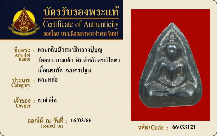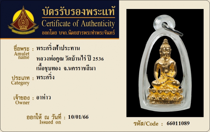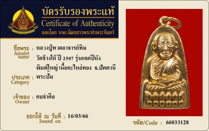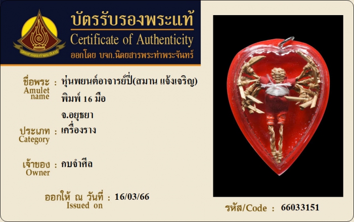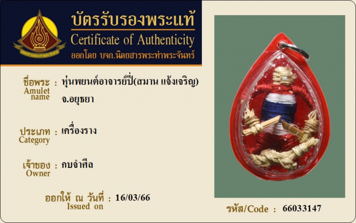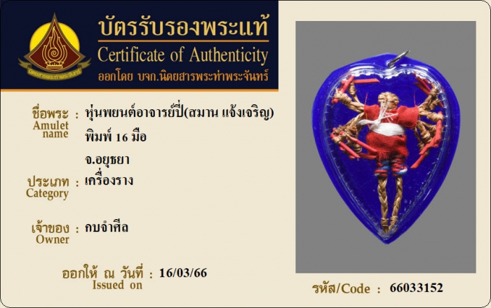 ค้นหาใบการันตีพระแท้
