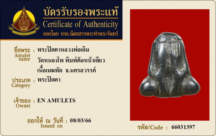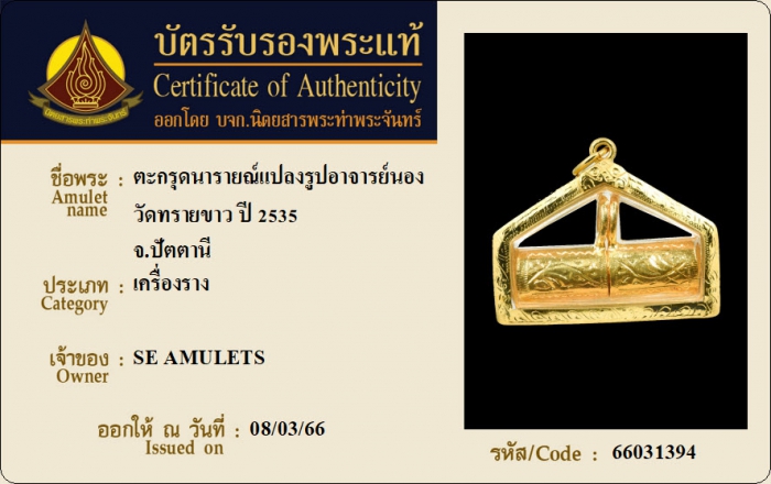 ค้นหาใบการันตีพระแท้