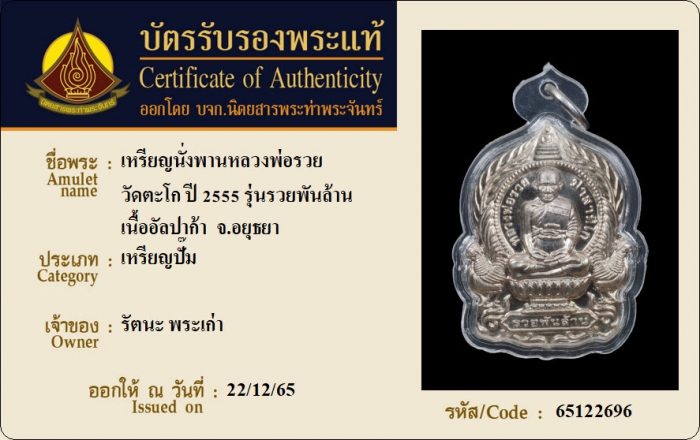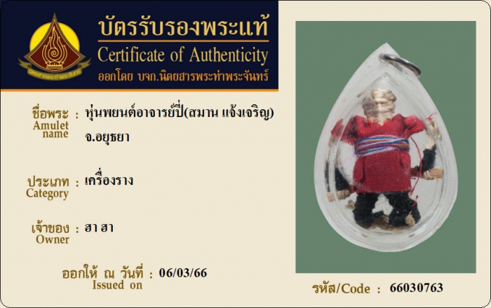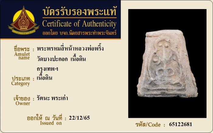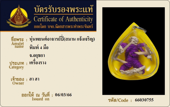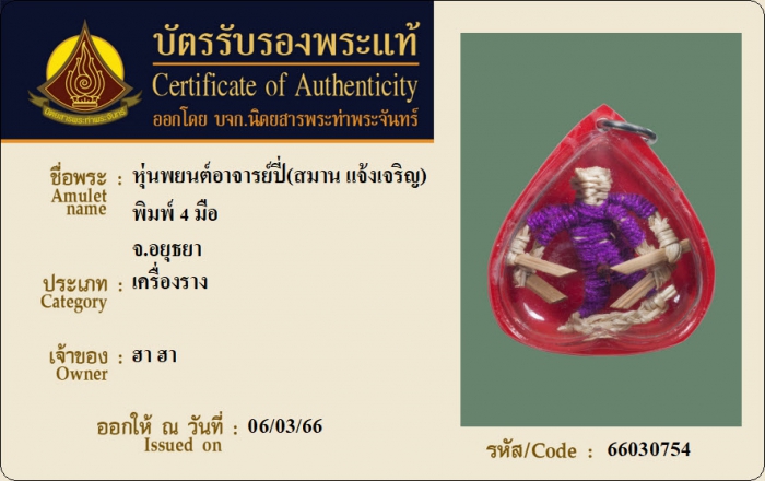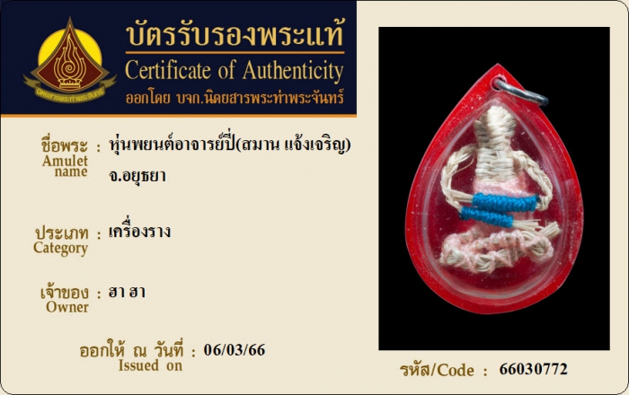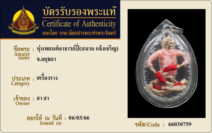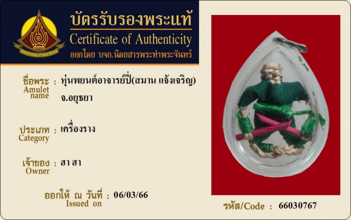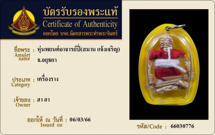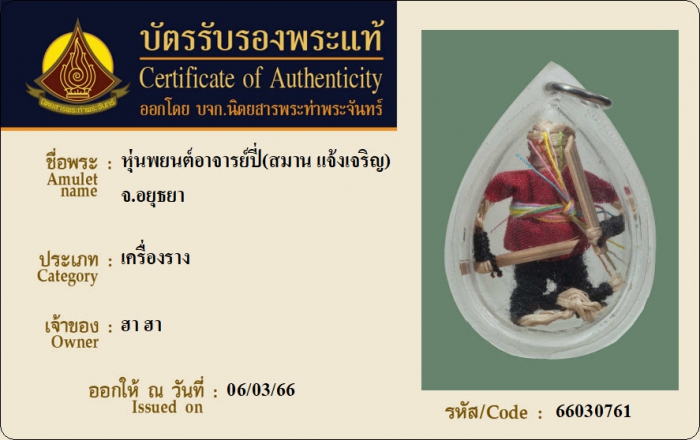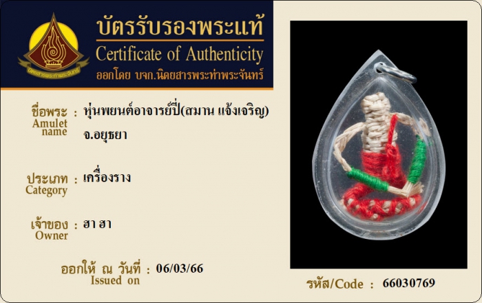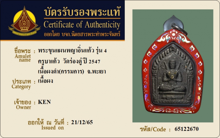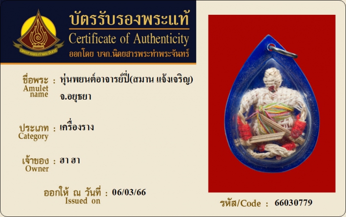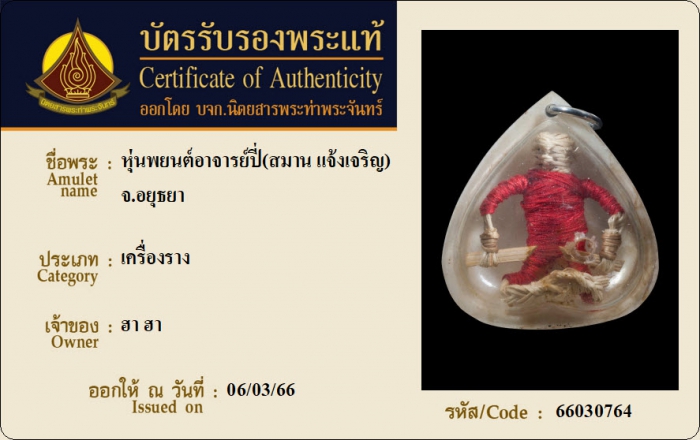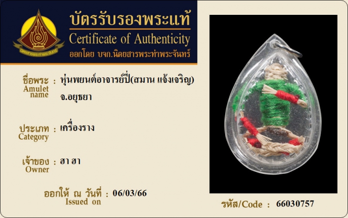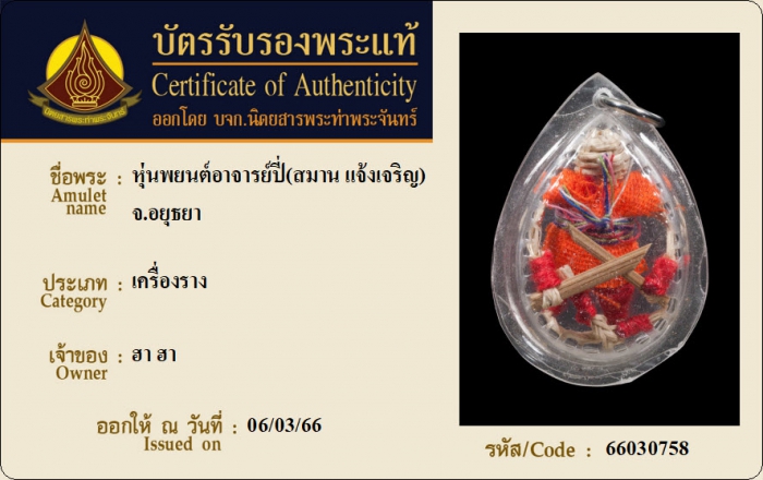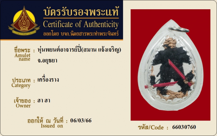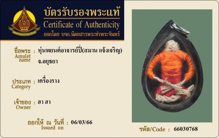 ค้นหาใบการันตีพระแท้