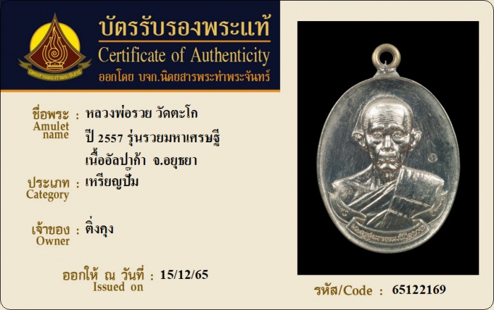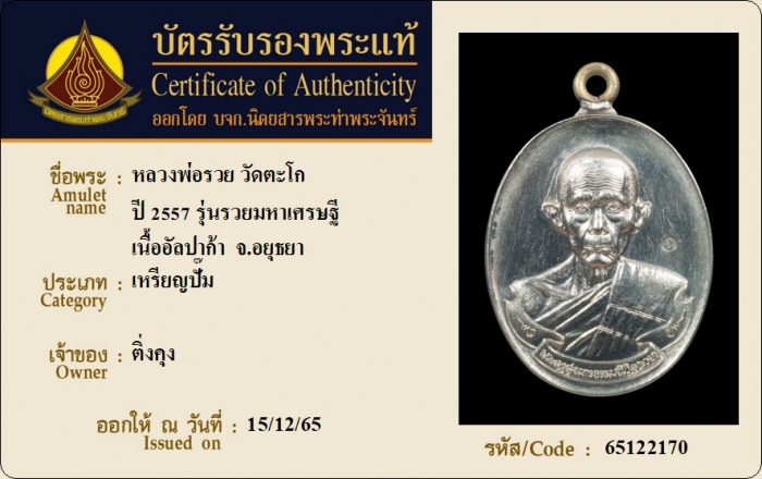 ค้นหาใบการันตีพระแท้