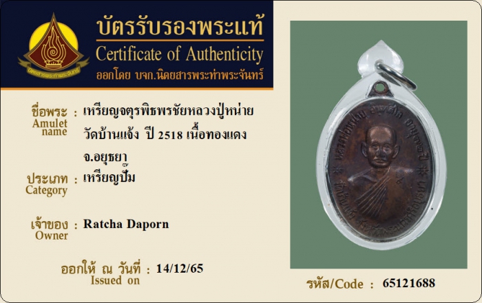 ค้นหาใบการันตีพระแท้