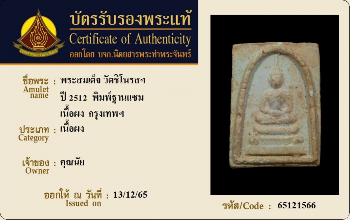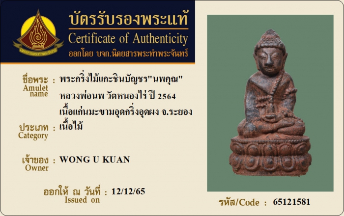 ค้นหาใบการันตีพระแท้