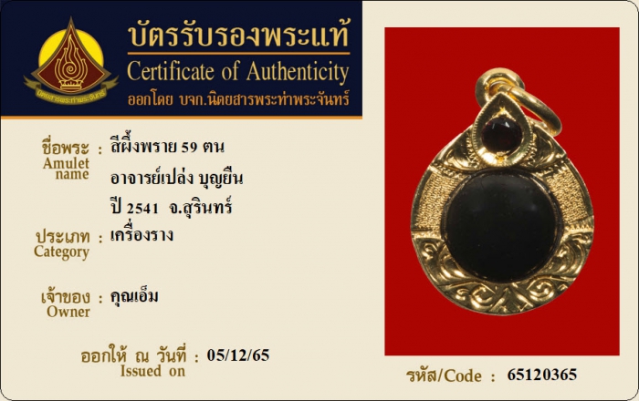 ค้นหาใบการันตีพระแท้