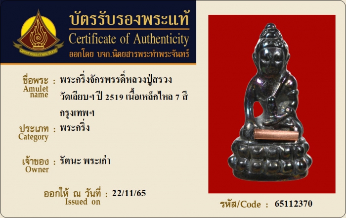 ค้นหาใบการันตีพระแท้