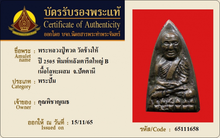 ค้นหาใบการันตีพระแท้