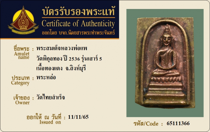 ค้นหาใบการันตีพระแท้