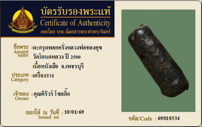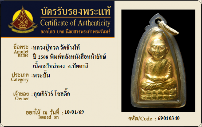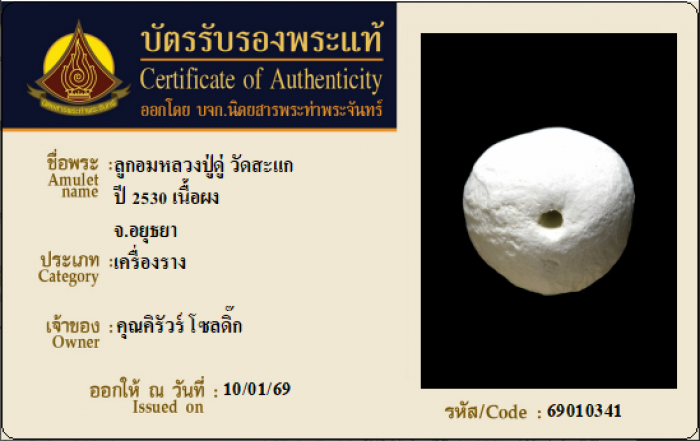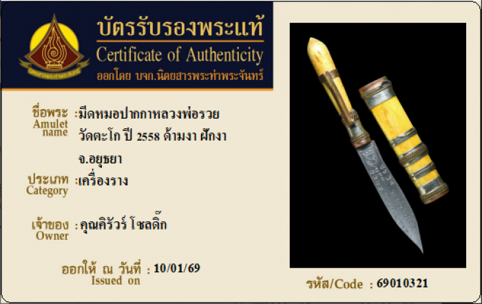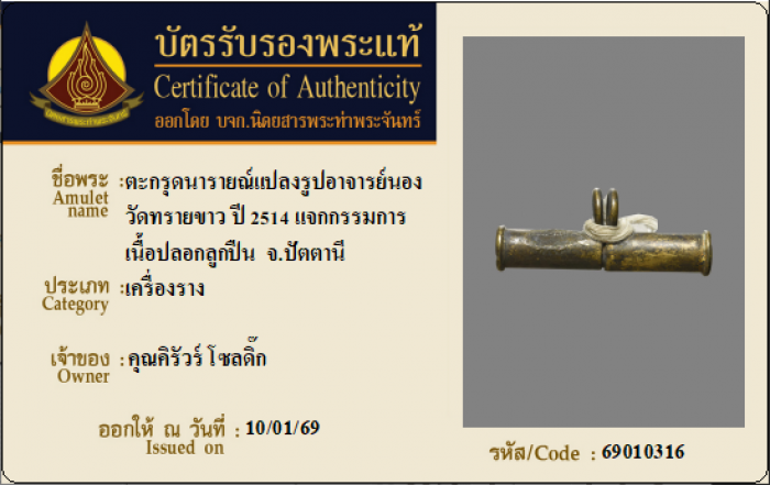 ค้นหาใบการันตีพระแท้