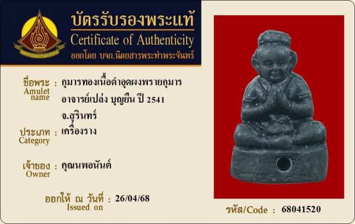 ค้นหาใบการันตีพระแท้